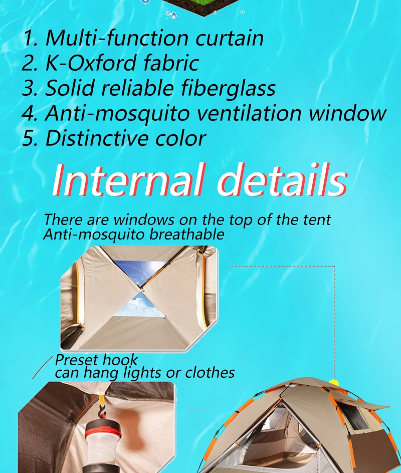 Автоматический наружный семейный тент для походов, походов, спортивных мероприятий, водонепроницаемый двухслойный супер-светильник для отдыха