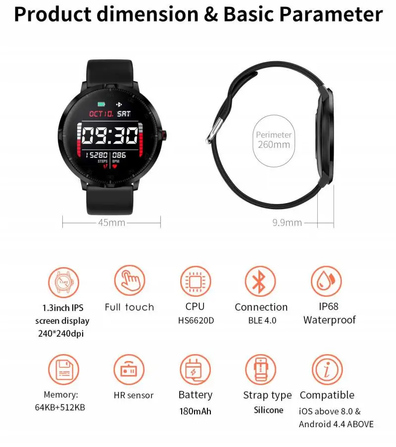 SENBONO GT98 IP67 Водонепроницаемый изогнутый экран Смарт часы для мужчин монитор