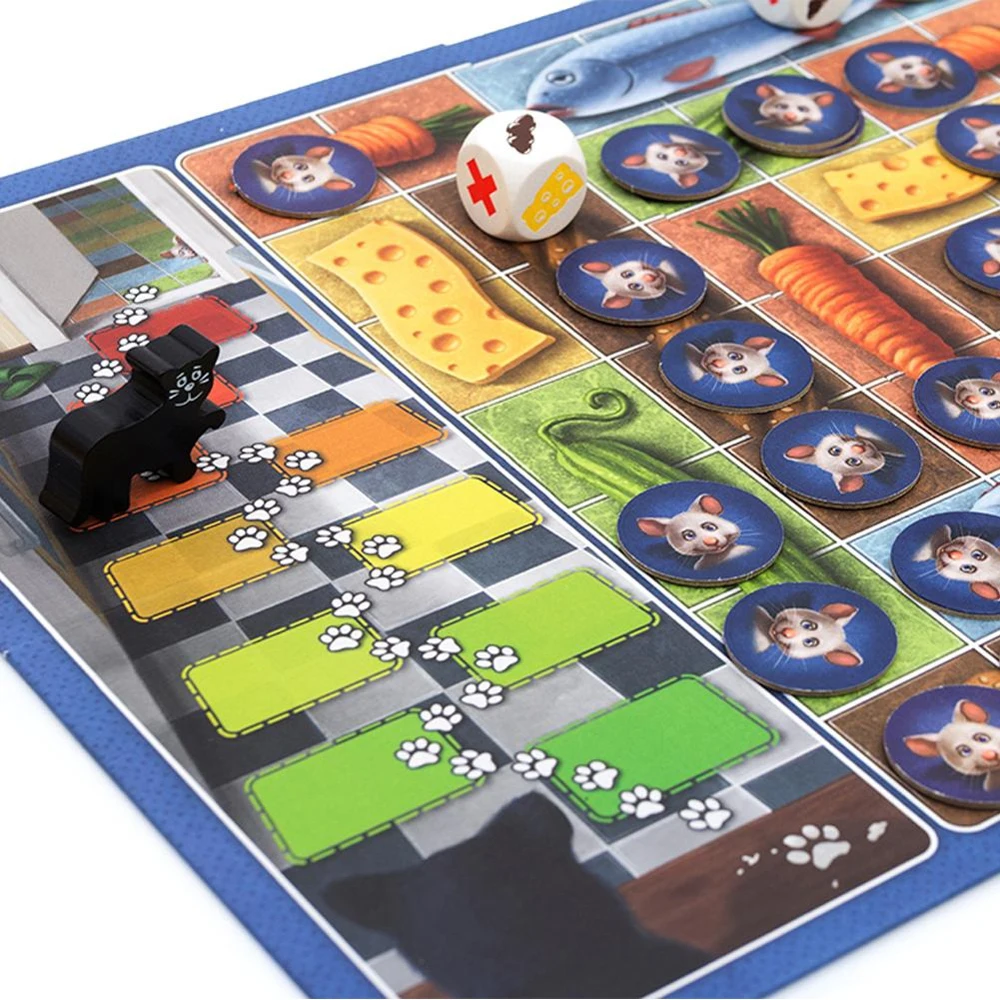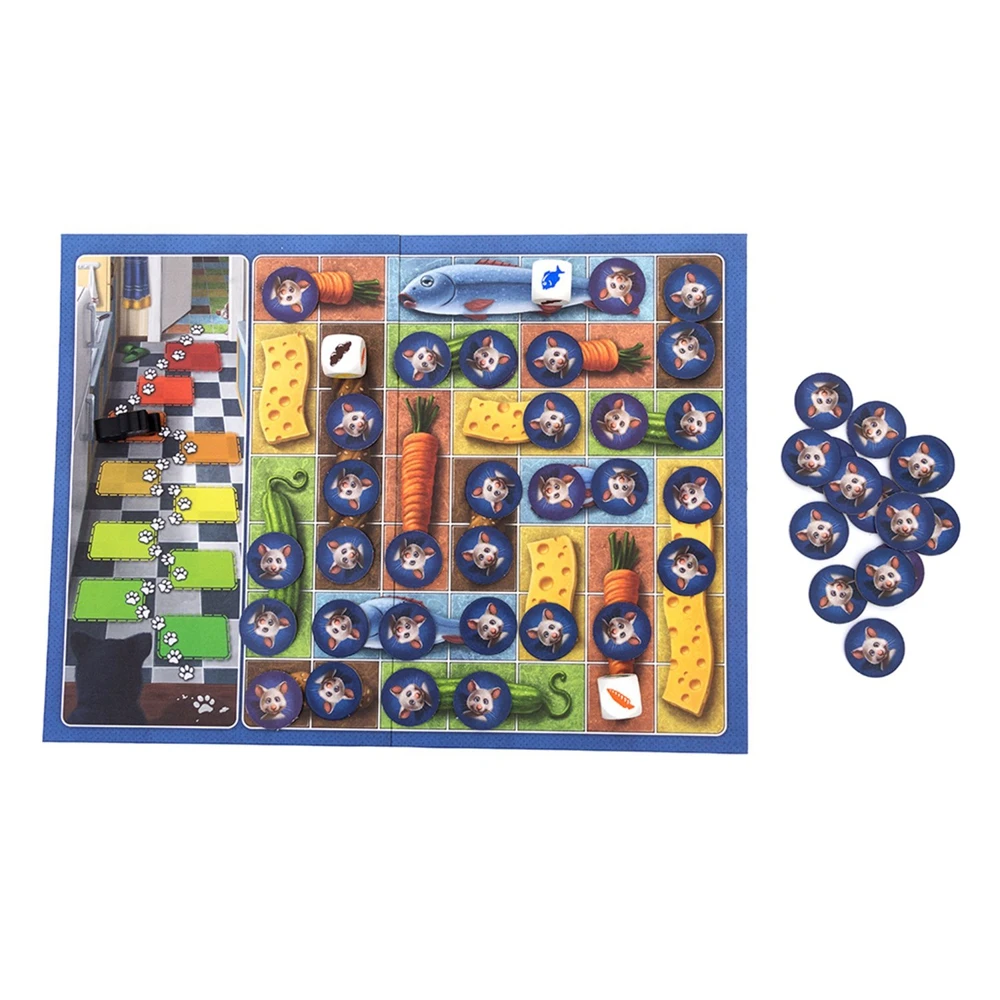 Эти мыши не из робкого десятка! Присоединяйтесь к мышиной команде и постарайтесь унести все лакомства из кладовой, пока вас не поймал рый чёрный кот. Бросьте кубики, чтобы определить, какое лакомство захватить из кладовой. Положите жетоны на выбранные лакомства. Закрыли лакомство целиком? Отлично! Оно у вас в норке! Поспешите: рый чёрный кот неумолимо приближается к кладовой!