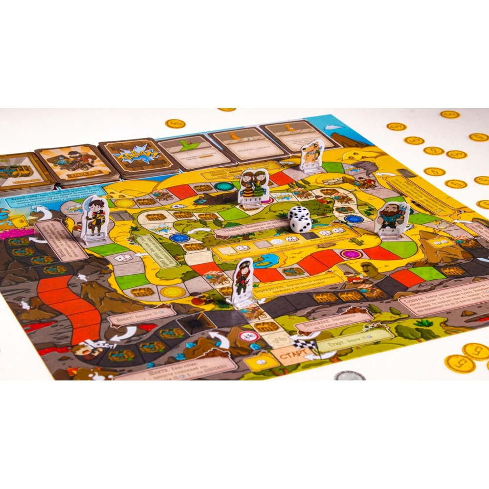 Ваша задача — добраться до финиша и заполучить сокровища злобного джинна, выкинув на кубиках 6. По дороге придется полагаться на собственную удачу, подставлять соперников, воровать монеты — одним словом, быть настоящим искателем приключений.