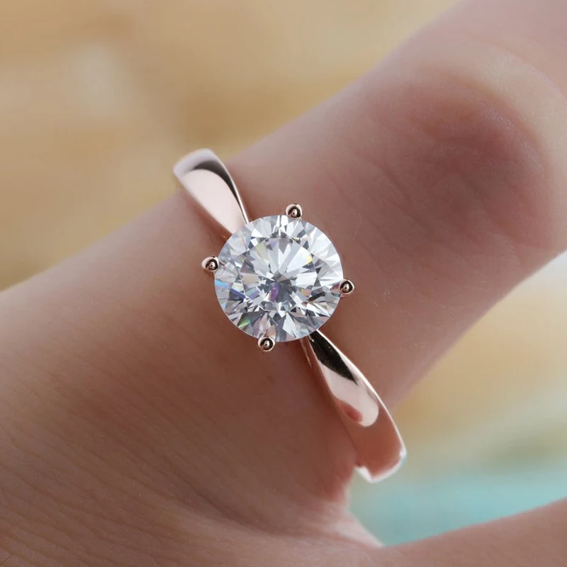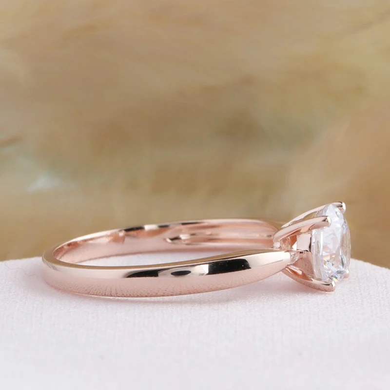CxsJeremy, 14K, покрыто розовым золотом Halo Муассанит солитер кольцо 4 зубец Обручение обручальное кольцо для Для женщин свадебные Юбилей подарок