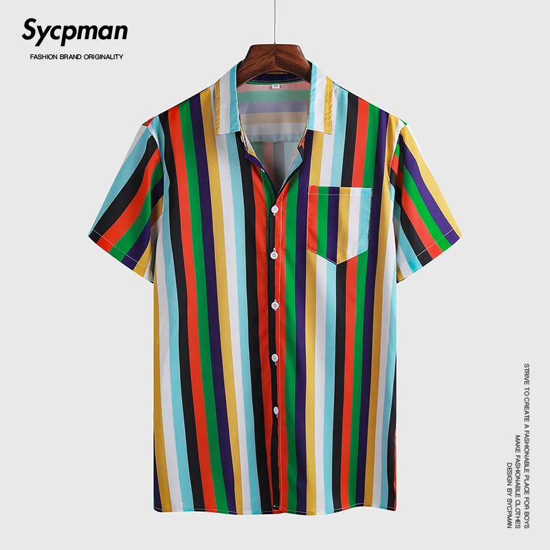 2019 г. летняя рубашка с принтом Для мужчин Повседневная модные классические
