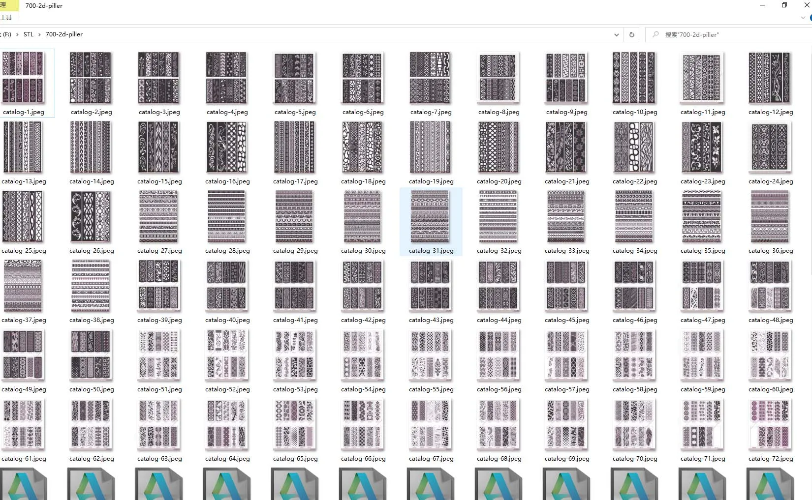 Каждый файл DXF содержит 10 штук 2D дизайна, поэтому всего 73 файла DXF (3 файла даются в подарок).