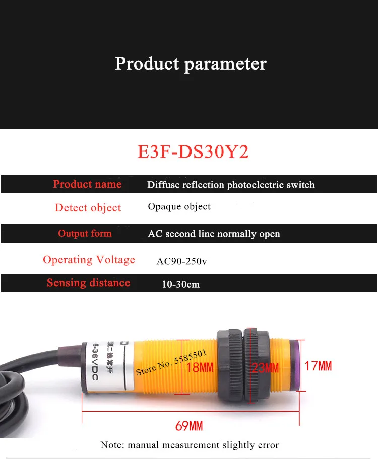 1 шт.E3F-DS30Y2 два провода переменного тока нормально закрыты