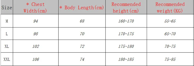 Примечание: Если вы не уверены в размере, пожалуйста, сообщите нам свой вес (кг), Рост (см) и информацию о талии и т. д. Чтобы мы могли помочь вам выбрать правильный размер. Ручное измерение, из-за различных индивидуальных методов, погрешность 1-3 см является нормальной, а не проблемой качества.