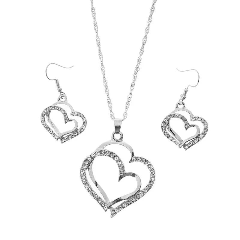 Гальванический процесс обработки сплава материала Стильные женские ожерелья Моделирование геометрических упаковок независимая упаковка индивидуальная обработка да Цвет золотой цвет, серебряный цвет Название продукта: популярное бриллиантовое Двойное сердце со стразами ожерелье и серьги Материал: сплав Размер подвески: внимание: 2,3*23 см Большое сердце: 4*4 см Вес: 17,6 г