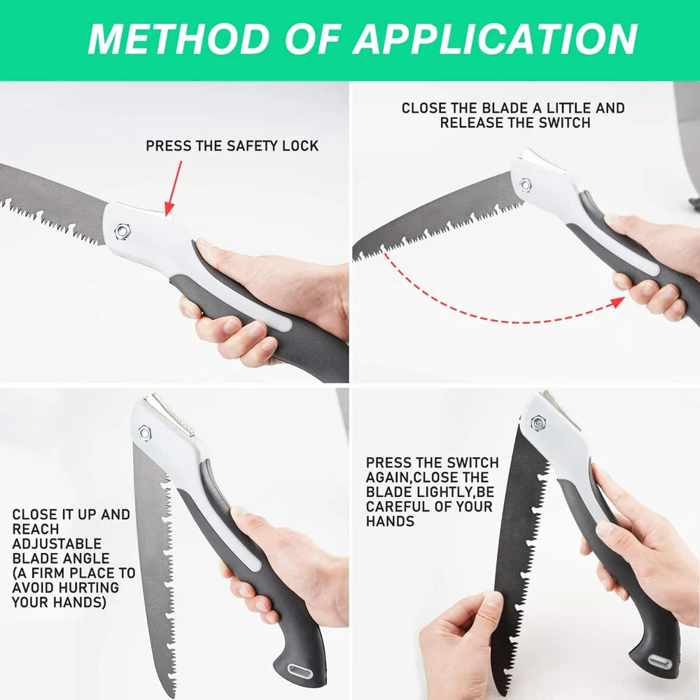 1. Лезвие SK5, тефлоновая антикоррозийная 2. Два размера могут удовлетворить различные потребности 3. Эта Складная пила легко режет дерево, дерево, кость и пластик