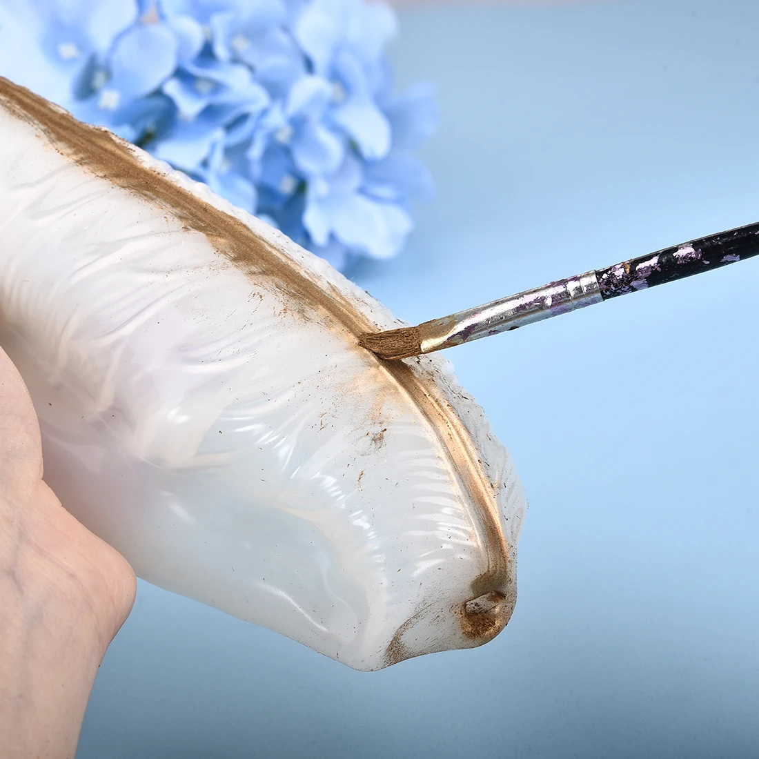 Налейте в него немного мраморного металлического пигмента зубочисткой,