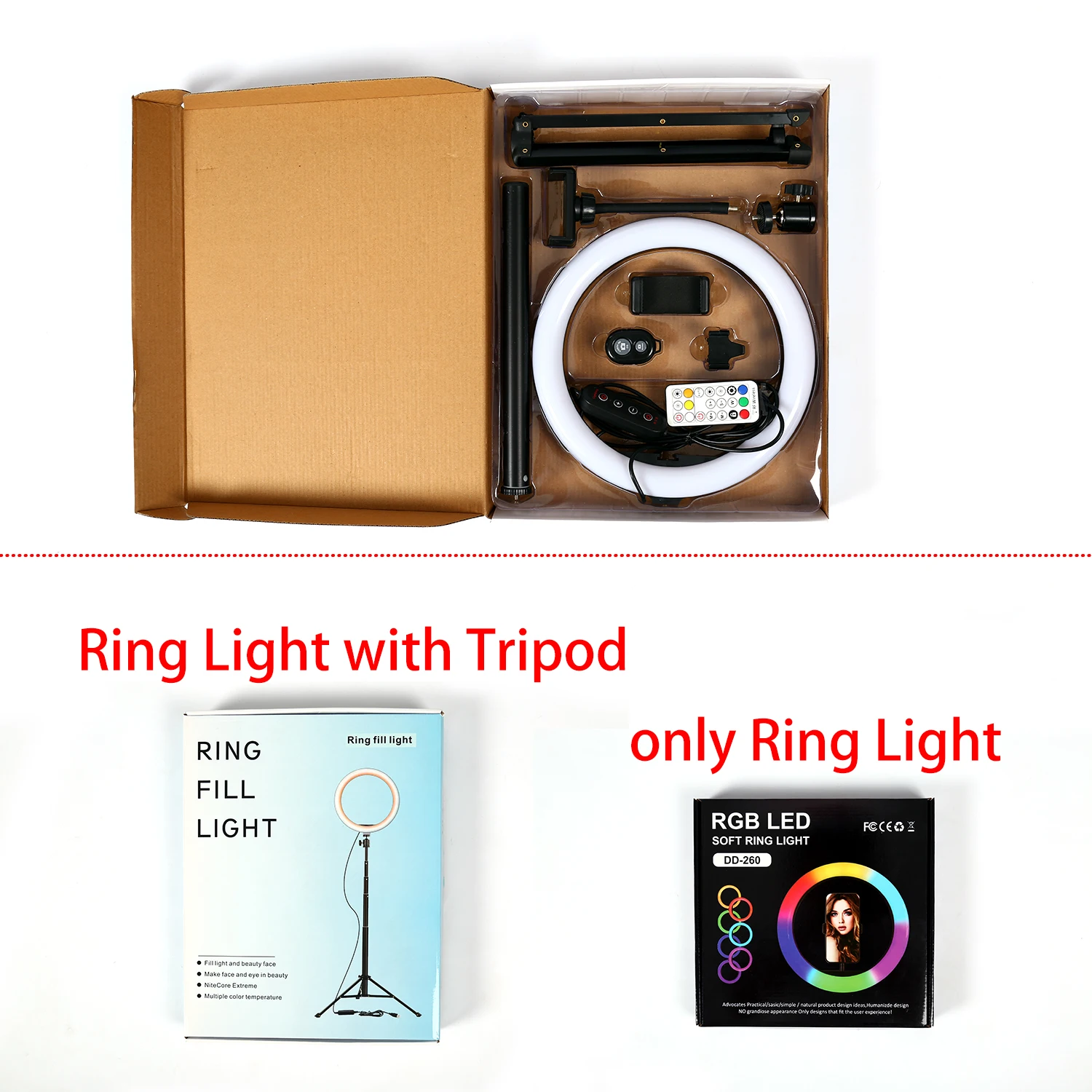 10 дюймов RGB кольцевой светильник с selfie stick светодиодная кольцевая лампа светильник USB кольцевая лампа 14 видов цветов света для фотографирования с держателем для телефона для видео