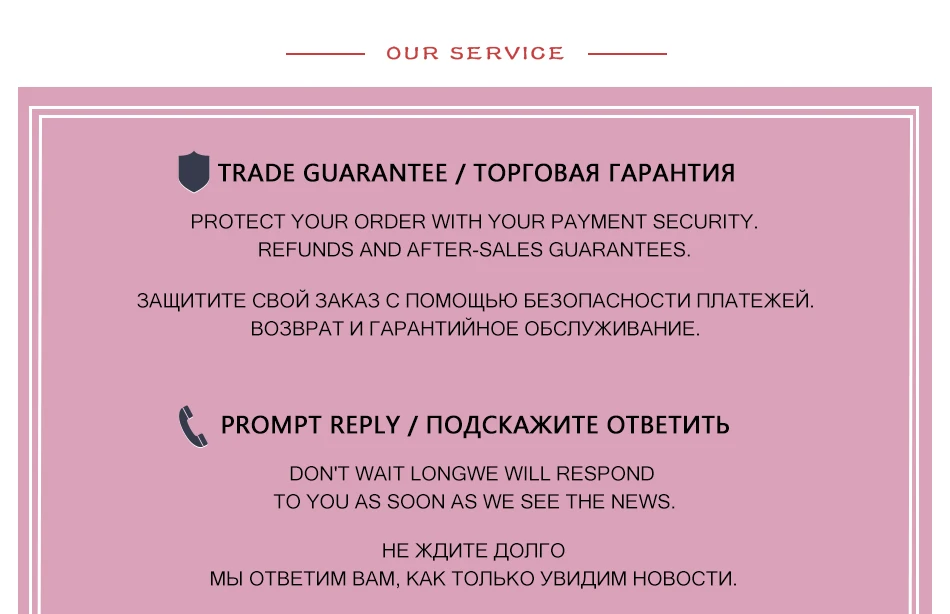 Пожалуйста, не волнуйтесь. Свяжитесь с нами. Мы обещаем, что если вы не получите его в течение 15 дней после указанной даты, мы вернем 100% от общей цены покупки и отправим товар вам в подарок.