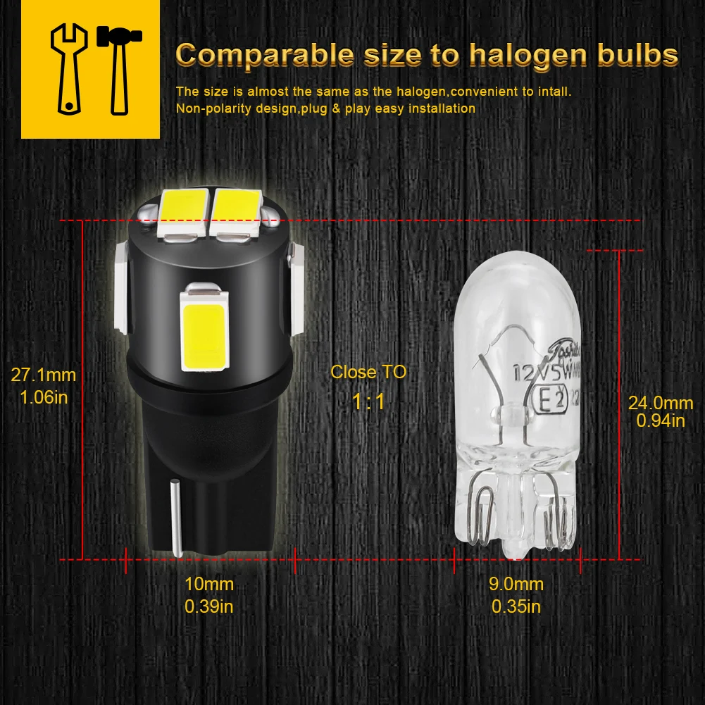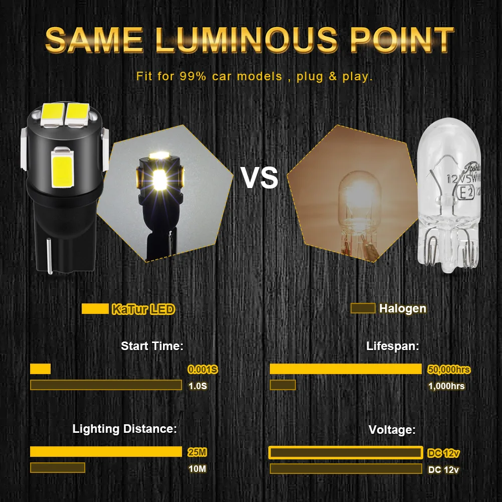 Подходит для большинства моделей автомобилей с гнездом T10 / 194 / 168 / 158 / 12256 / 12961 / 2821 / 825 / W5W.