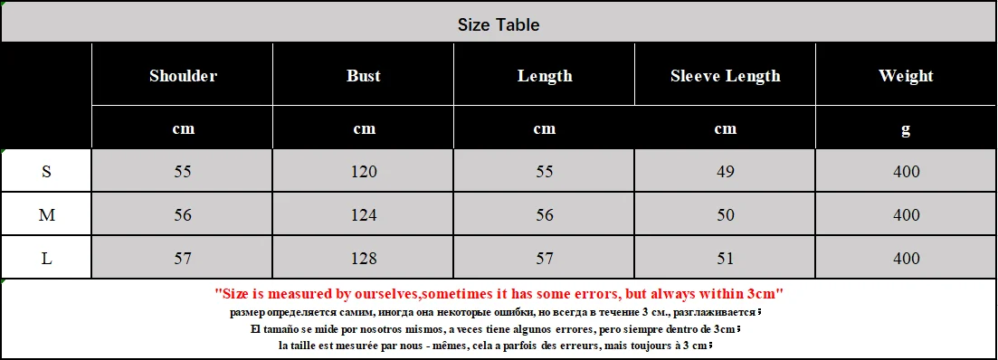 1. Различные виды одежды отличаются по стандарту, поэтому не судите только по размерам/M/L/XL, но и по определенным номерам в таблице размеров. 2. Есть некоторые хроматические аберрации из-за светильник. 3. Если вы не можете определить значение Таблицы размеров, пожалуйста, свяжитесь с нами. 4. Если размер не номер, а диапазон. Это означает, что одежда эластичная, ее можно растянуть до больших размеров.
