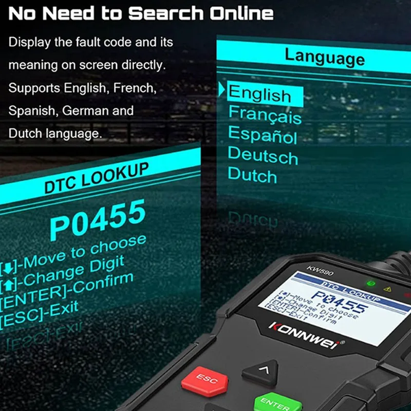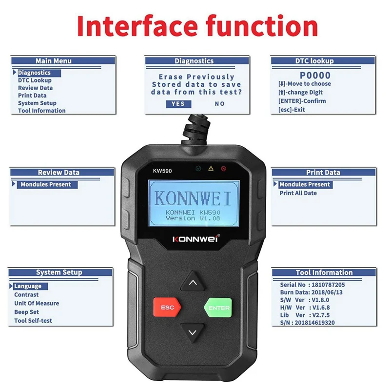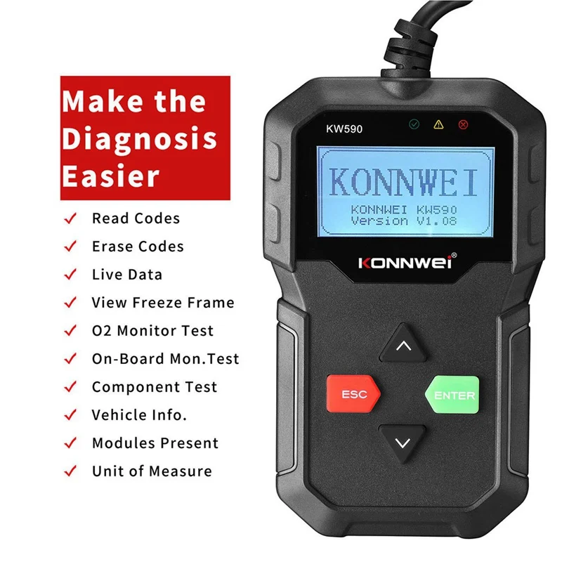 KW590-отличное Обновление от более основного инструмента автоматического сканера кодов. Основная функция-это работа над системой двигателя транспортного средства. После подключения к вашему автомобилю 16pin OBDII DLC после запуска зажигания, вы можете выбрать для диагностики того, что вы хотите знать о вашей машинной системе, кислородном сеноре, испарительной системе управления и т. Д. Затем Узнайте проблемы и, возможно, Исправьте это. Описание товара: Сканер KONNWEI KW850 OBDII / EOBD поддерживает все 10 режимов тестирования OBDII для полной диагностики. Благодаря уникальной запатентованной клавише I / M, цветному tft-дисплею и встроенному динамику, AutoLink AL519 действительно является конечной мощностью и доступностью, позволяет пользователям быстрее выполнять свою работу. Кроме того, тысячи советов по коду устранения неполадок помогают техникам экономить время диагностики и ремонта. Особенности и функции сканера: * Работает на всех 1996 и более поздних OBDII совместимых с США, европейскими и азиатскими автомобилями * Легко определяет причину проверки двигателя светильник (MIL) * Извлечение общих (P0, P2, P3 и U0) и конкретных кодов производителя (P1, P3 и U1) * Отключает контрольный светильник двигателя (MIL), очищает коды и сброс мониторов * Отображает определения DTC на экране устройства * Просмотр данных о замораживании кадра * Отображение монитора и состояния готовности I / M (выбросов) * Определяет ожидаемые коды * Eads live PCM datastream * Отображает данные тестирования датчика O2 в реальном времени * Графики данных C (1996 и более новые) * Чтение, хранение и воспроизведение данных датчика в режиме реального времени * Резервное копирование памяти/батареи для обзора и анализа данных вне транспортного средства * Поддержка шести языков: английский, французский, немецкий, голландский, испанский, русский, португальский * Выполняет испытания модулей * Извлечение информации о транспортном средстве (VIN, CIN и CVN) * Поддержка CAN (контроллер сети) и всех других токов * Протоколы OBD-II * Встроенная OBD-II библиотека поиска DTC * Большой легко читаемый ЖК-экран с подсветкой * Обновление программного обеспечения через Интернет * Печать данных через ПК Аксессуары продукта: 1 x считыватель кодов автомобиля iNNEXT KW590 OBD2 1 х USB кабель 1 x Руководство пользователя 1 xProtective нейлоновый чехол Вес: 0,36 кг