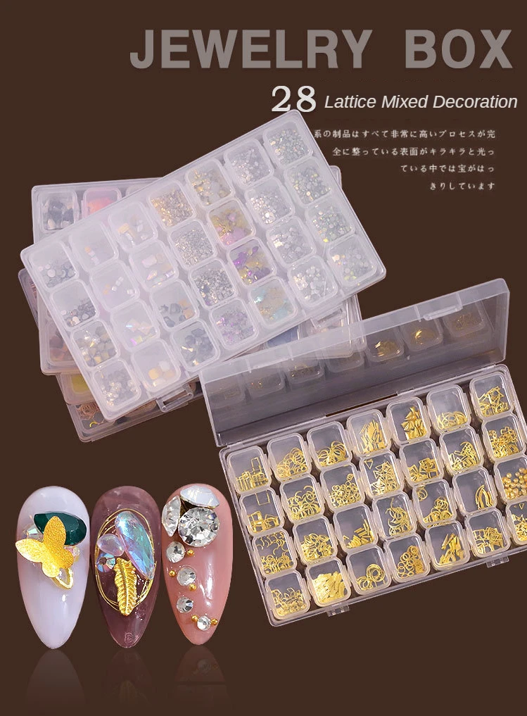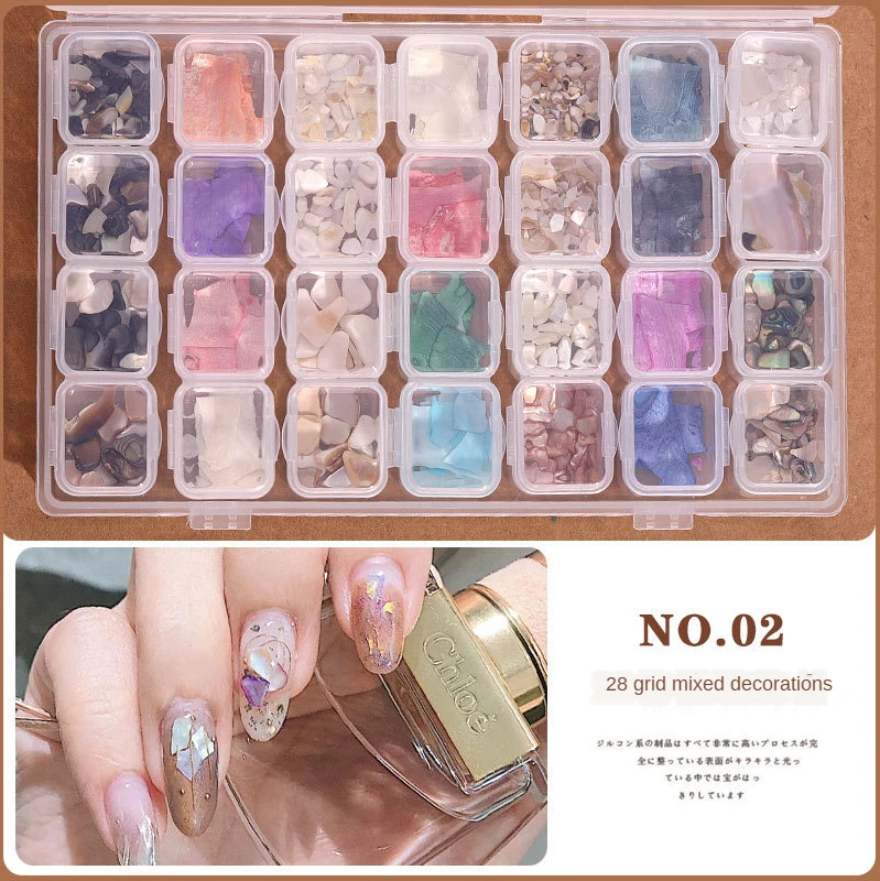 28 слотов/Набор 3D украшения для ногтей смешанные заклепки оболочка жемчуга хрустальные стразы DIY для аксессуары для ногтей маникюрный набор для ногтей