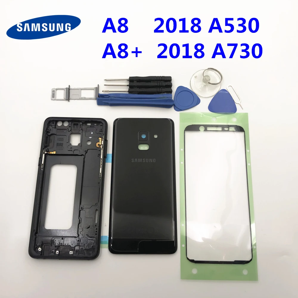 Замените поврежденный чехол, совершенно новый, высококачественный продукт с 100% точной посадкой! Полный Корпус чехол задняя крышка + передний экран стеклянный объектив + средняя рамка для Samsung Galaxy A8 2018 SM-A530F/DS A8 plus A730 Полный корпус чехол для Samsung Galaxy A8 2018 SM-A530F/DS A8 plus A730 средняя рамка Батарейная Дверь Задняя стеклянная задняя крышка A530 Посылка: 1 шт. х средняя рамка 1 шт. X крышка батареи + объектив камеры + клей. 1 шт. X слот для sim-карты 1 шт. X Клей 1 Набор инструментов