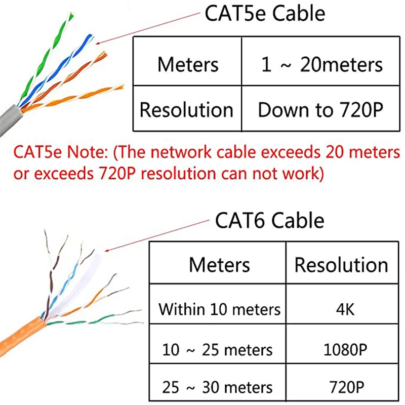 3. Высокая четкость: с помощью кабеля Cat-6 дальность передачи до 30 метров до 1080p.