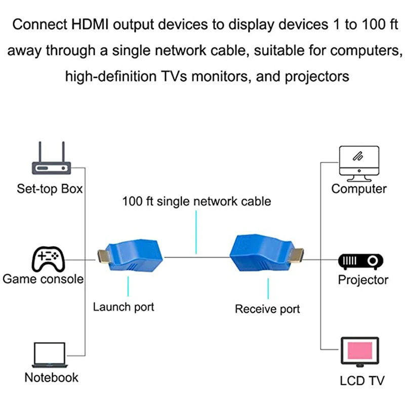 1 * HDMI к RJ45 сетевой кабель удлинитель повторитель