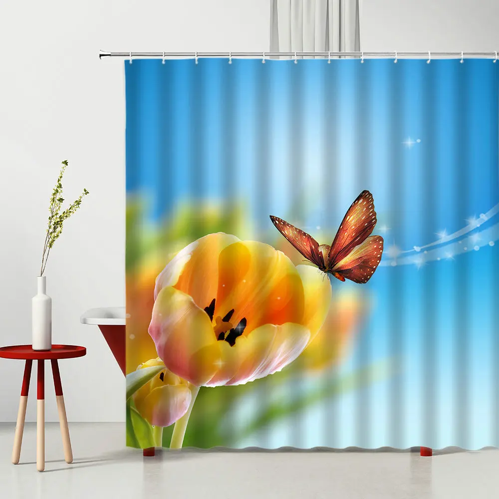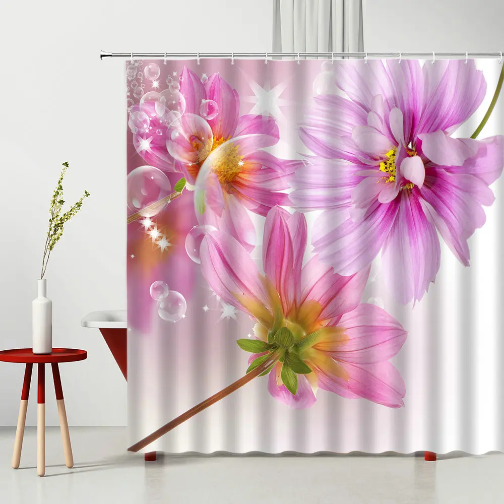 Растительная печать занавеска для душа с хризантемами дикий цветок природные пейзажи Водонепроницаемая занавеска для ванной занавеска водонепроницаемый полиэфирный экран с крючком