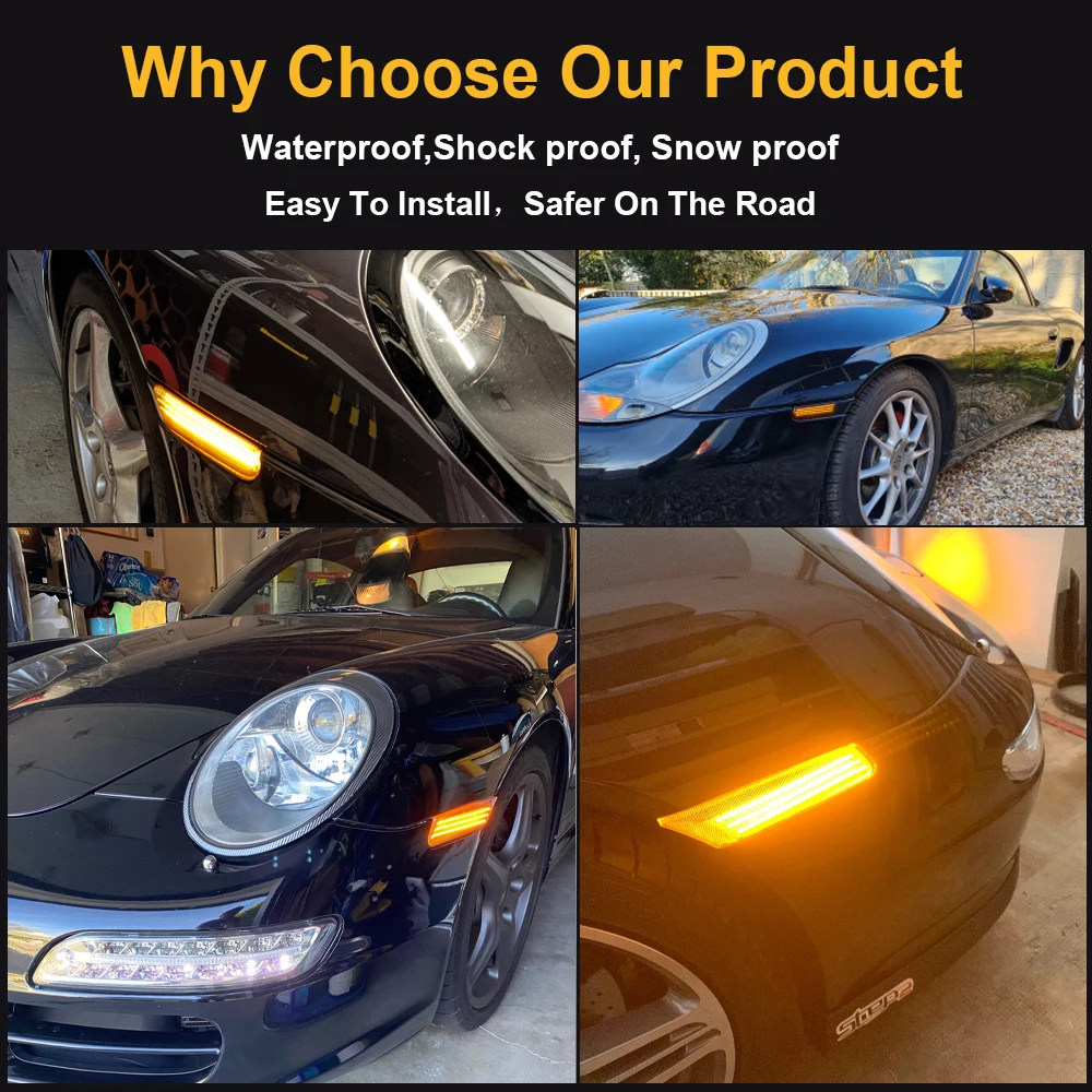 2 шт. динамические стрелы янтарные светодиодные, боковые, габаритные фонари, сигнал поворота для porsche 911 997 Carrera Targa Turbo porsche cayman boxster 987