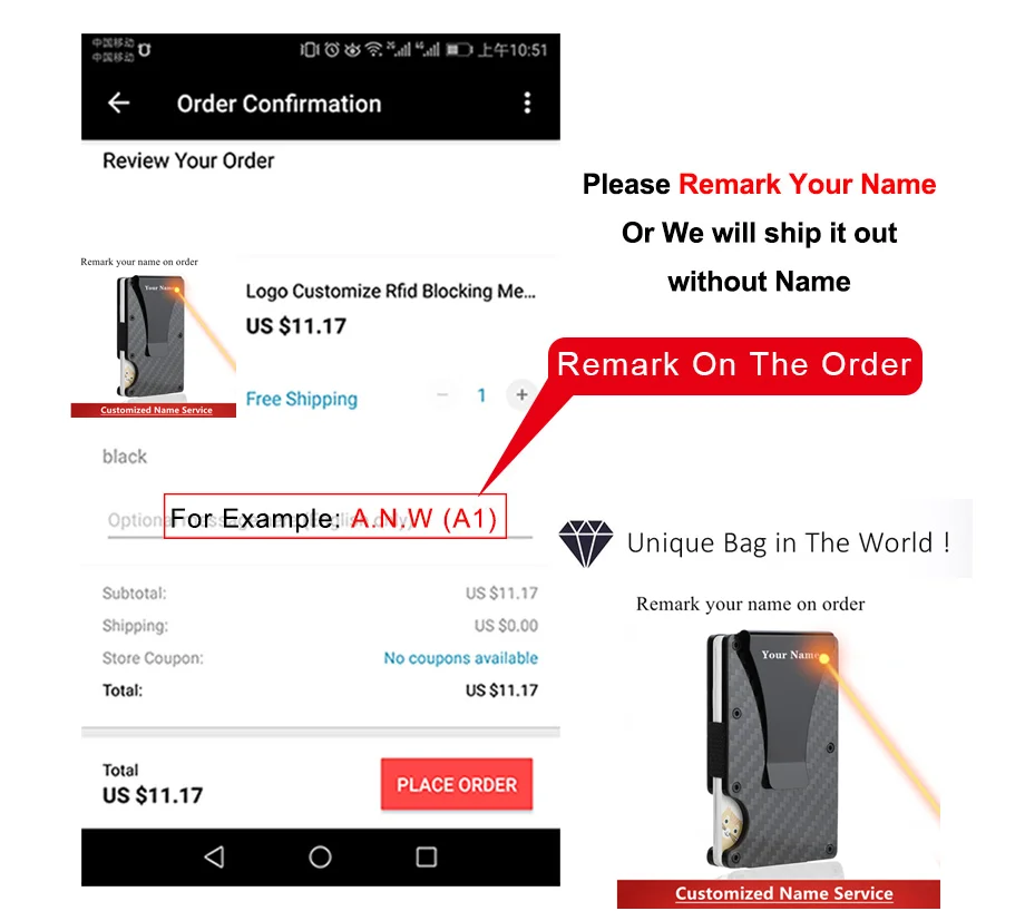 Пожалуйста, выберите название заказа или мы отправим его без имени. 1. Пожалуйста, укажите ваше имя в заказе, если вам нужна гравировка, или мы отправим как обычно без гравировки. 2. Обычно для гравировки имени требуется 2-3 дня. (Мы обещаем, что отправим его как можно скорее. 3. Нет гарантии возврата или обмена на гравировальные изделия. 4. Текст не должен быть слишком длинным.
