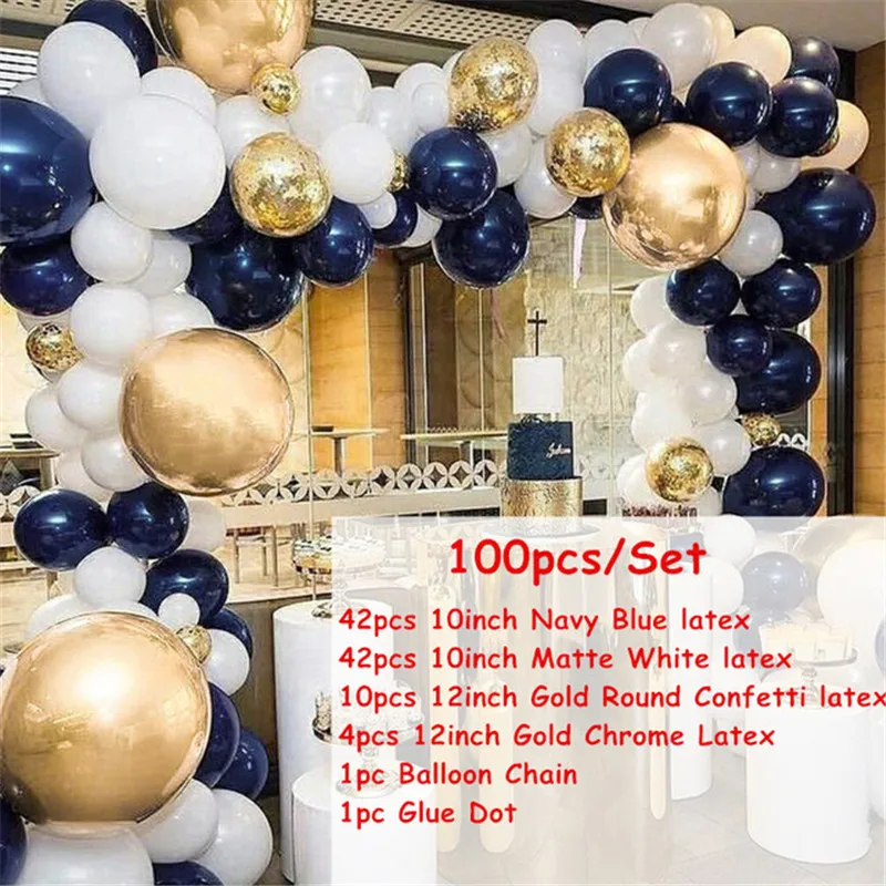 100 шт./лот Темно-Синий Золотой металлический Шар АРКА комплект Свадебные вечерние Макарон латексные конфетти шары Гирлянда Декор балаос