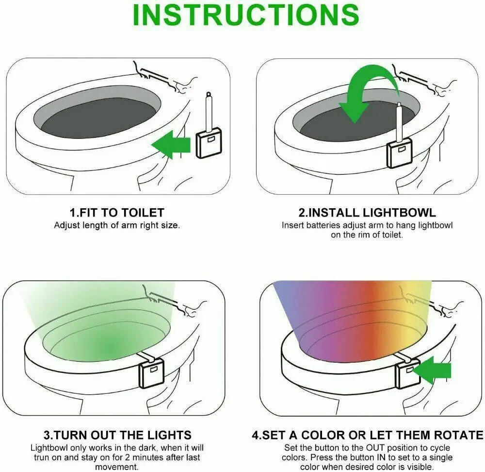 8 светодиодный Цвет s-вы можете выбрать фиксированный цвет, чтобы соответствовать вашему настроению, или выбрать режим карусели, который будет плавно проходить через каждый оттенок цвета внутри вашей унитаза при активации. Вы можете выбрать свой любимый цвет (красный, желтый, лазурный, зеленый, синий, фиолетовый, розовый и белый) или позволить им вращаться. Приятный мягкий светильник хорошо подходит для ваших сонных глаз.