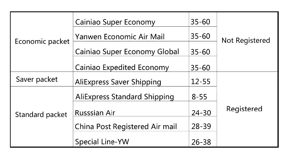 2. Пожалуйста, обратите внимание, что срок доставки для Почта Китая общего пакета плюс, Почта Китая заказной авиапочтой и AliExpress стандартной доставкой составляет 16-35 рабочих дней. В чехол особых обстоятельств, как, например, погода, праздники, корректировки политики, обычаев, а также отдаленных районах, время доставки будет задержана. Спасибо за понимание.