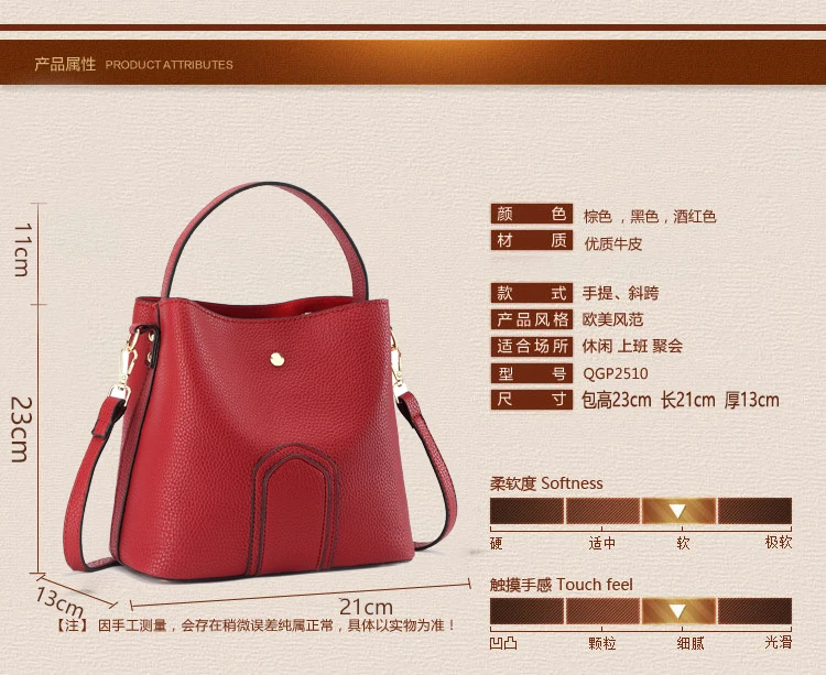 Материал: Высококачественная кожа Характеристики: водонепроницаемый, противообрастающий Цвет: красный, черный, коричневый Функция: одно плечо, Кроссбоди, портативный Размер: длина 21 см * ширина 13 см * высота 23 см Структура: внутренний карман/карман на молнии Назначение: отдых/шоппинг/Путешествия/школа