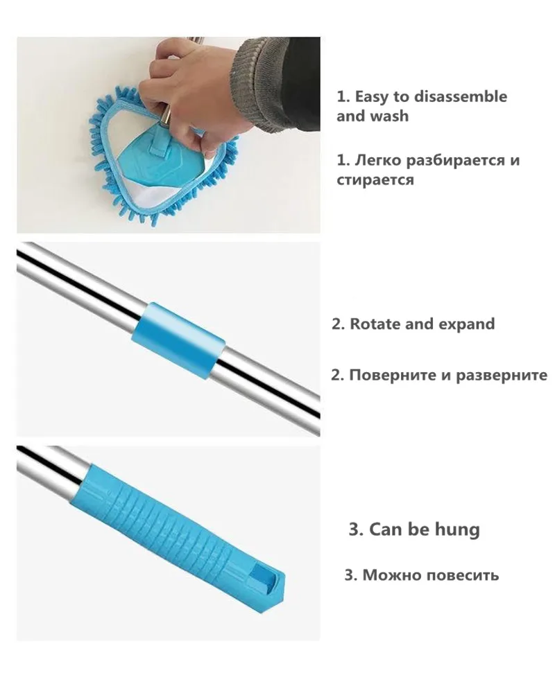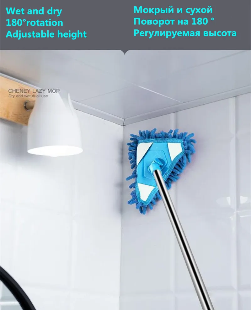 Эта мини-швабра с треугольниками поможет вам очистить лампы высокого места, стекло, полы, стены, углы, Висячие фотографии, автомобильное стекло и туалеты. . . Используется для сухой и влажной. Близко к земле, быстрое поглощение воды, легкое обеззараживание, вращение на 180 °, Глубокая очистка зазора, материал из мягкого волокна, вы не будете беспокоиться о повреждении вашей мебели.