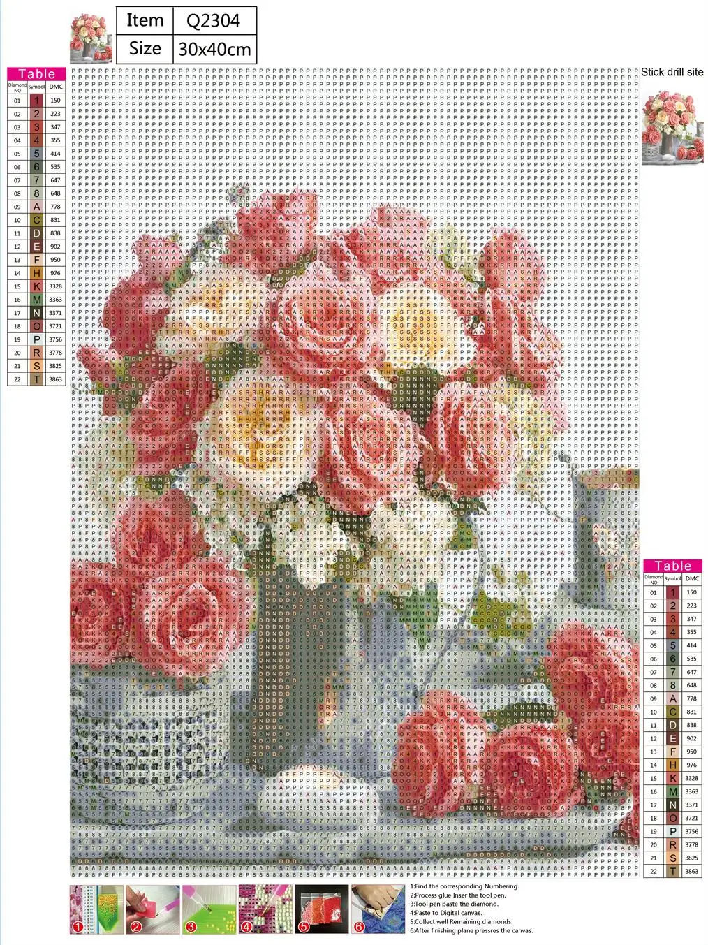6. Para crear una pintura de diamante perfecta, los dibujos colocados en un solo lugar, los ssimbolos de cada fila no tienen que quedarse pegados como diamantes.