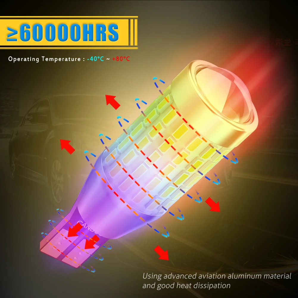 1. Только используется для заднего хода автомобиля. 2.Canbus без ошибок: встроенные резисторы нагрузки canbus, чтобы избежать ошибки OBC cod