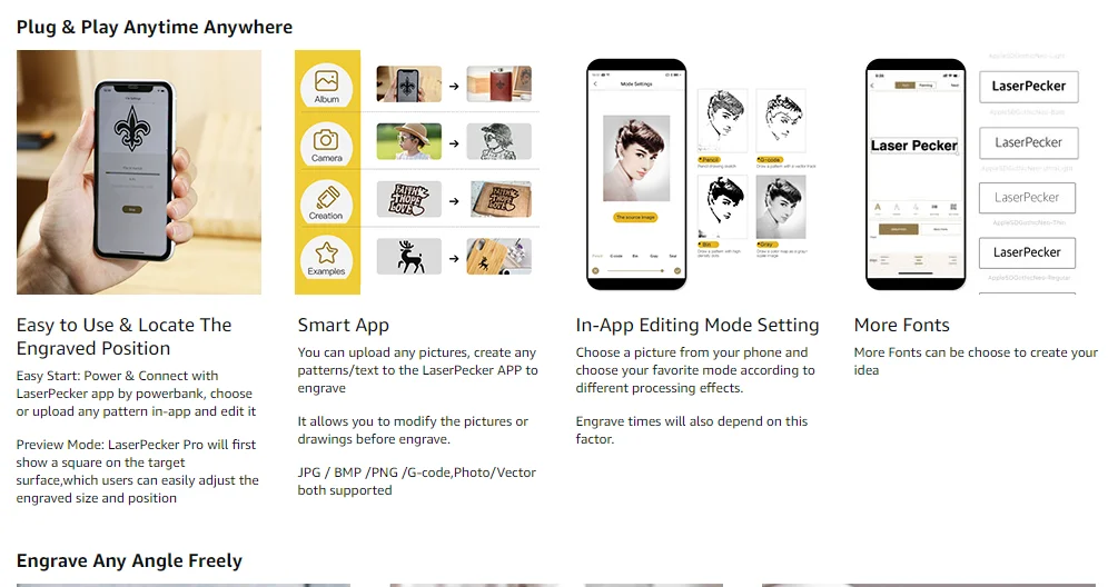 5. Режим работы: используйте мобильный телефон APP, легко управлять, Вы можете DIY любой шаблон, который вы хотите выгравировать;