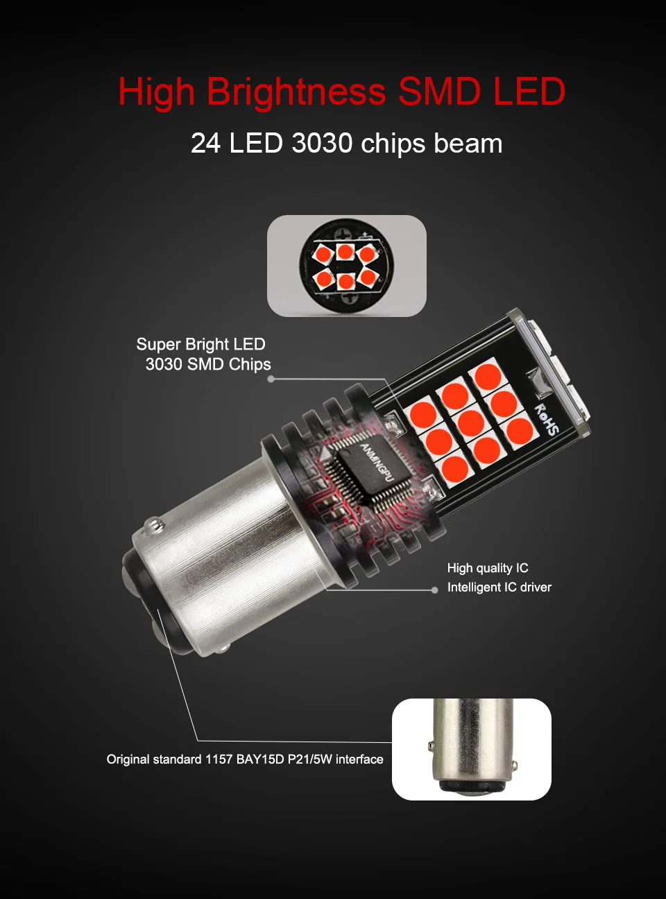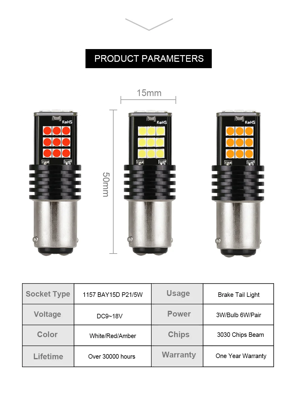 Посылка: 1 шт. Светодиодная лампа Характеристика: 1. Название бренда: VENDY 2. Неполярность 3. Светодиодный Тип чипа: 27 SMD 3030 чип (1,5 Вт * 27SMD) 4. Тип разъема: BAY15D,1157,BA15S,7443,7440,3157,3156... 5. Напряжение: DC9-18V 6. Мощность: 8 Вт 7. Световой поток: 3600LM 8. Материал: алюминий 9. Срок службы: 50000 часов 10. Применение: тормозные огни, задние противотуманные фары... Светодиодный светильник заменит галогенную стеклянную лампу на складе 11. Гарантия: 3 года Низкая температура, низкое энергопотребление Добавьте стиль и украсьте свой автомобиль. Супер яркие светодиоды намного ярче, чем оригинальные лампы накаливания.