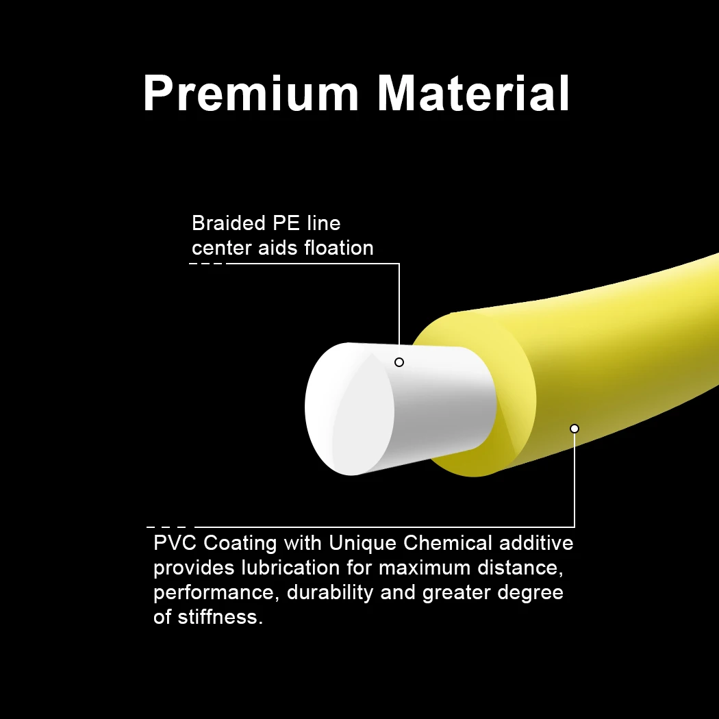 3. Премиум Материал: леска для рыбалки внутри сплетена из полиэтиленовой проволоки, снаружи покрыта слоем ПВХ, увеличивая прочность лески.