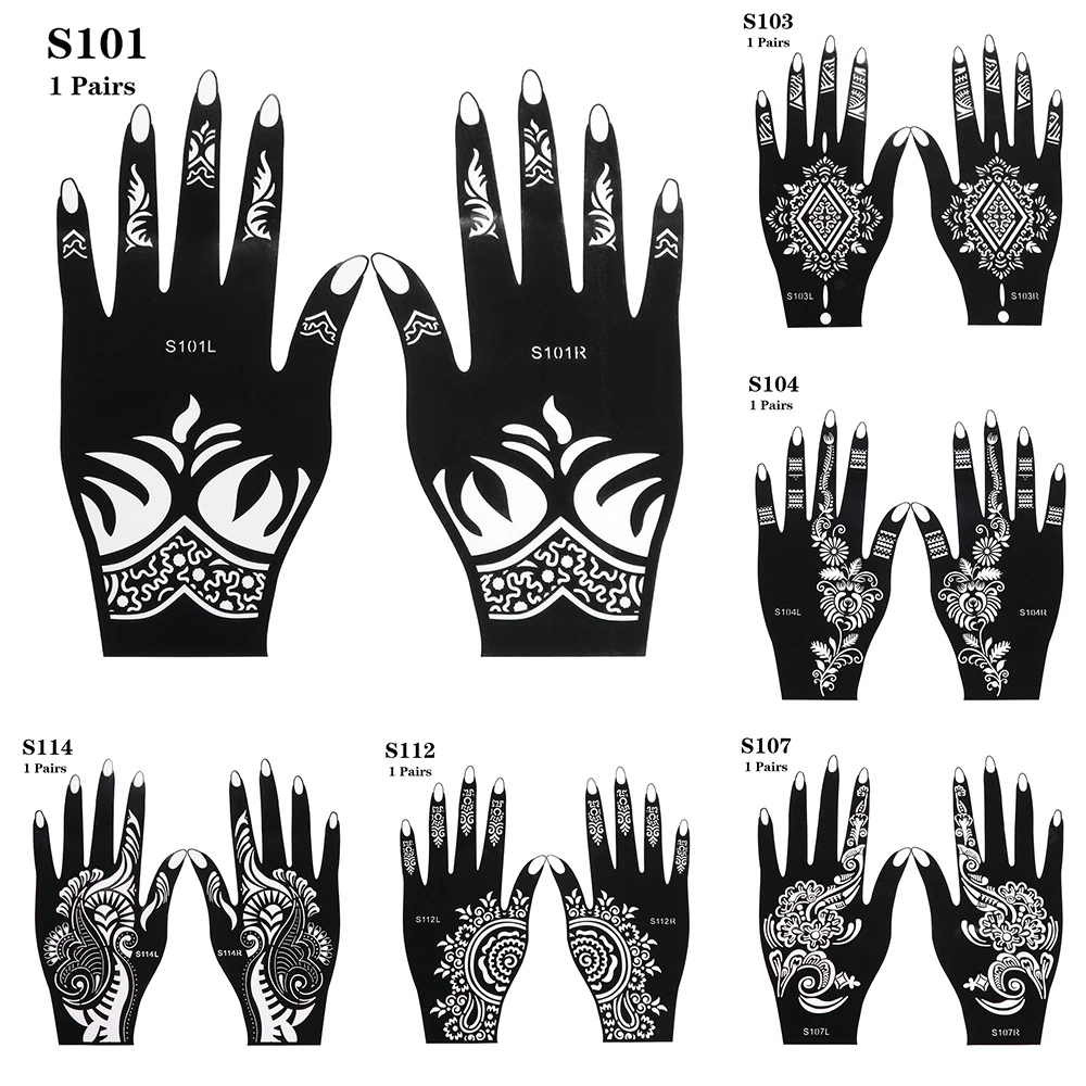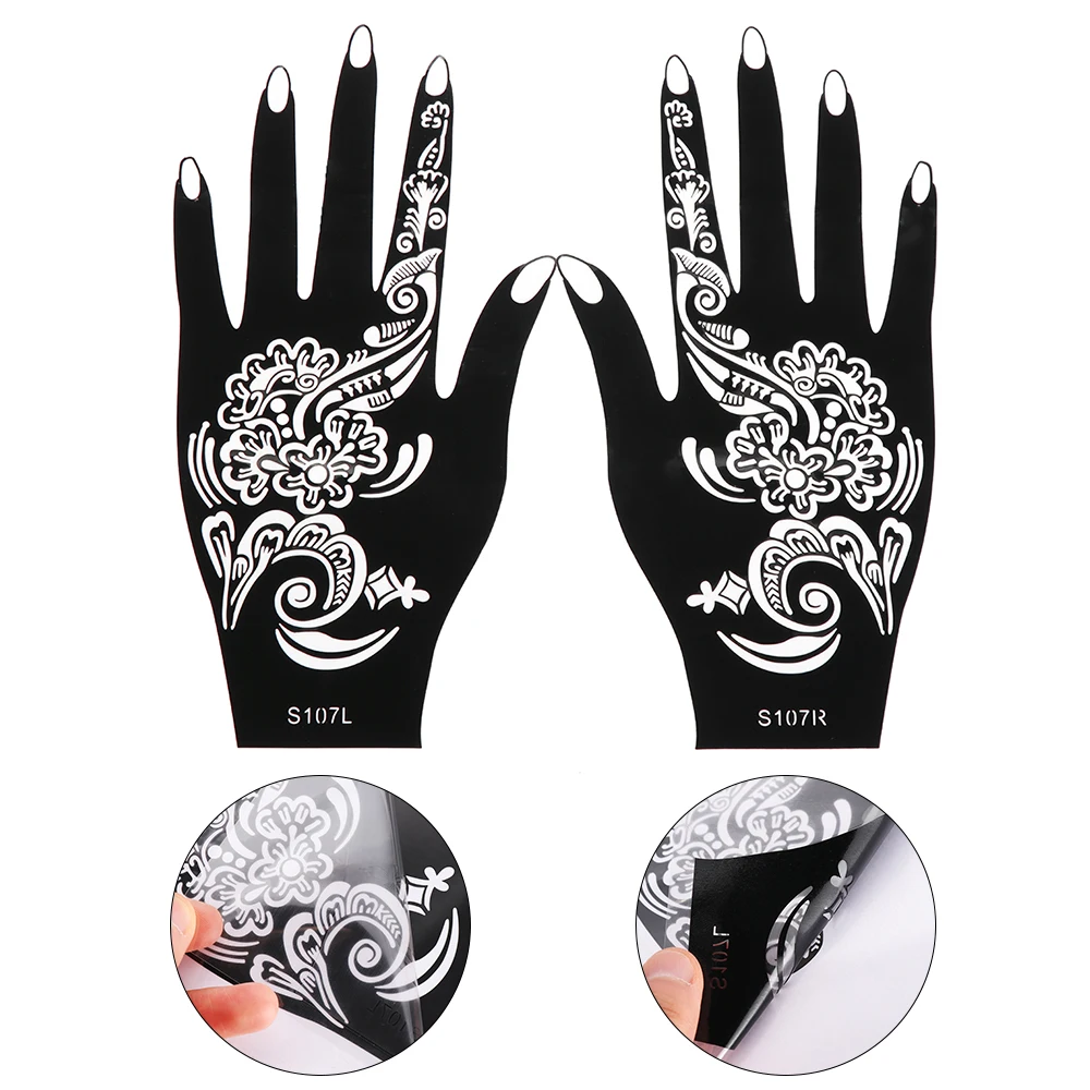 1 пара выдалбливают хна шаблон стикер трафареты татуировки DIY боди-арт временная Красота Ручная наклейка Свадебная живопись инструмент для макияжа