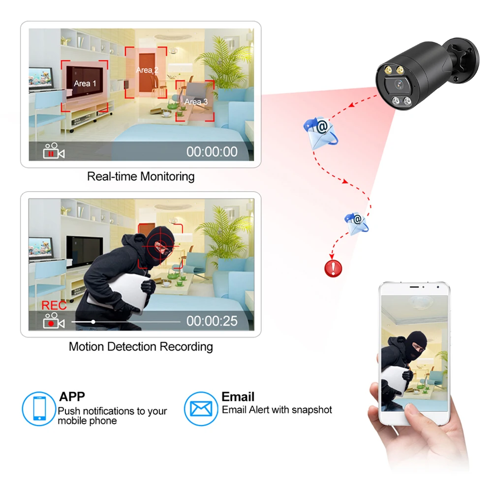 Функция записи обнаружения движения: при обнаружении движения сетевой видеорегистратор сохранит отснятый материал на жесткий диск, не пропуская никаких важных событий. Вы даже можете убедиться, что избегают ложных сигналов тревоги, установив «маску» для обнаружения движения, чтобы блокировать зоны с постоянным движением.