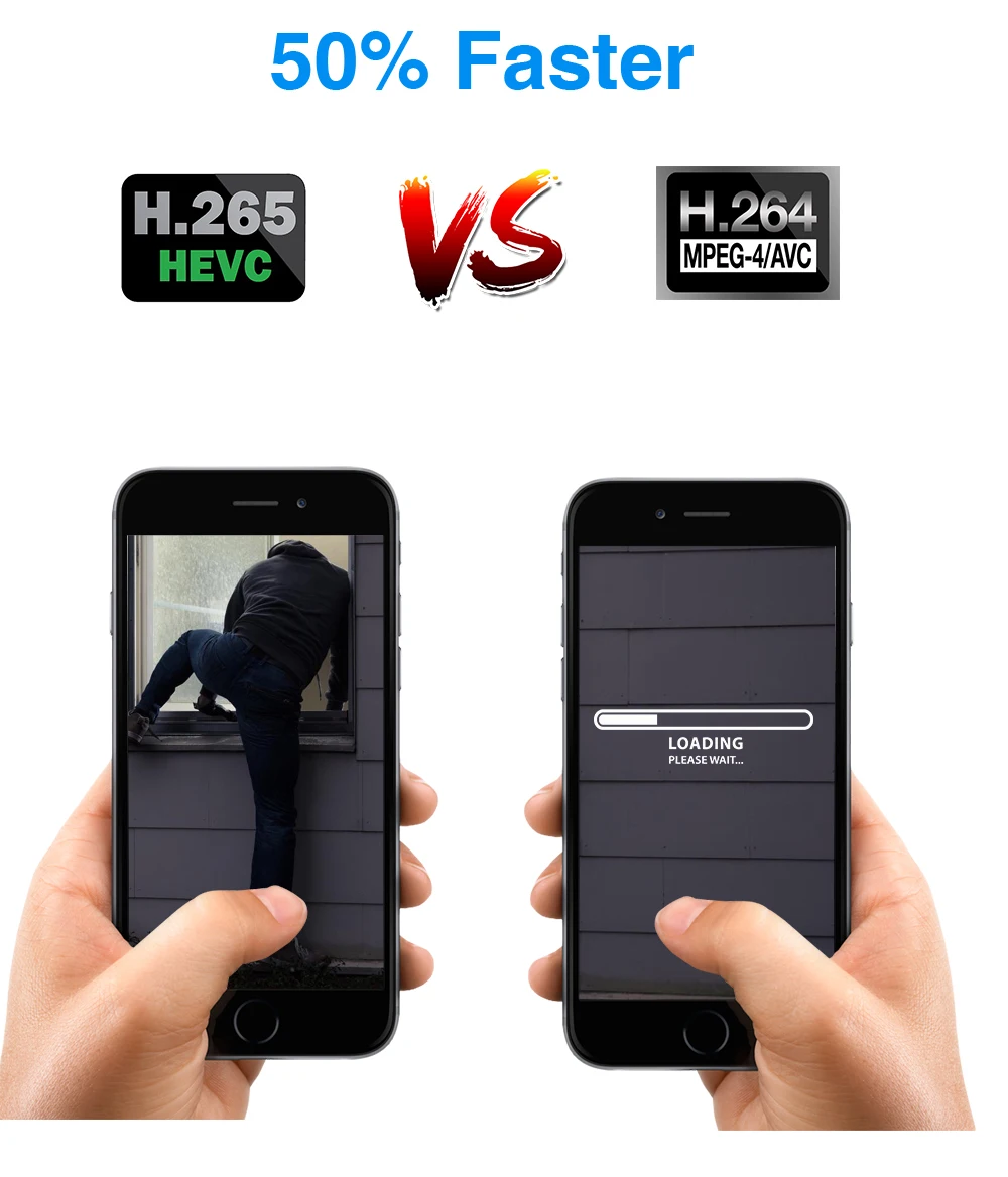 Более четкое разрешение HD H.265 обеспечивает лучшее качество изображения с более низкой частотой передачи данных. Экономит больше места в хранилище, уменьшает 40%-50% размера файлов, экономит место в жестком диске и снижает стоимость покупки.