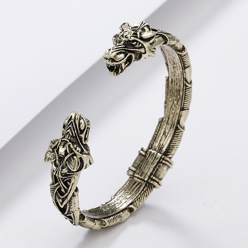 1. Этот красивый браслет викинга ручной работы изображает голову волка на каждом конце. Волки имели большое значение для мифологии викингов, и этот браслет является представителем чудовищного волк Фенрир, который сражается и убивает Одина во время рагнарока (конец мира).