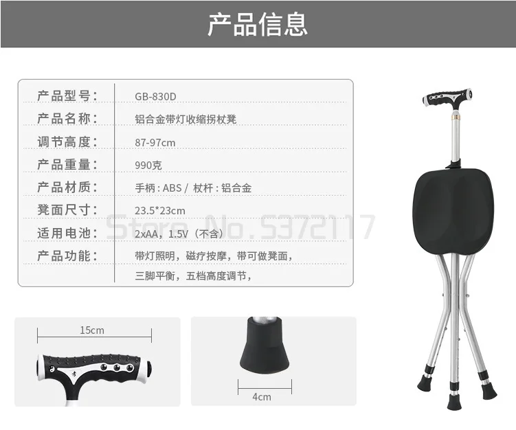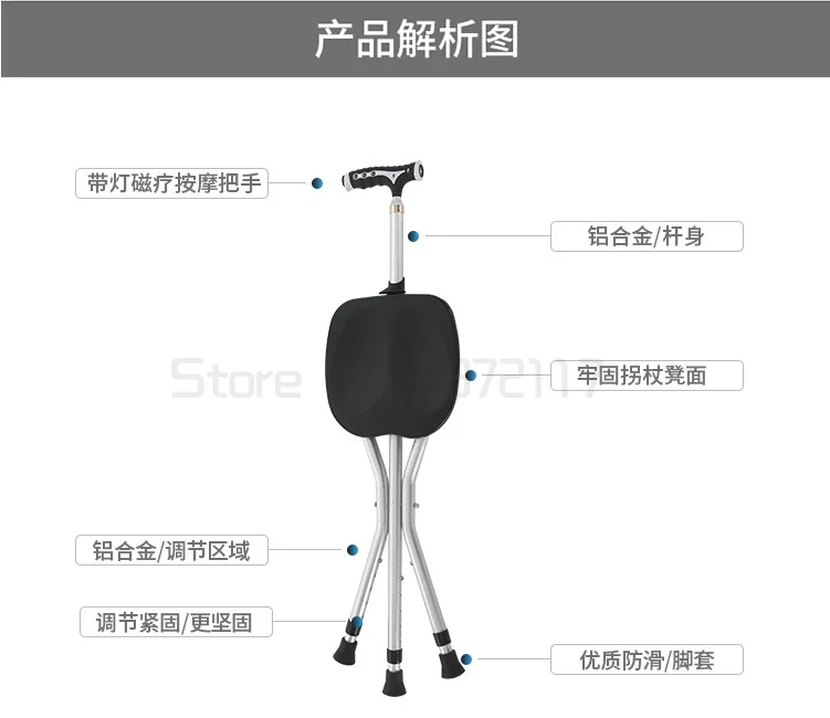 Название продукта: Выдвижной трехногий стул костыля из алюминиевого сплава