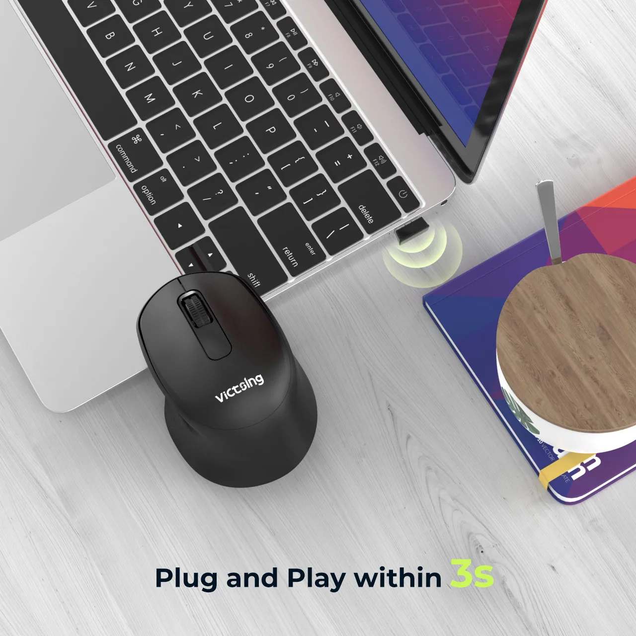 Мгновенная Plug and Play. Оснащенная технологией 2,4G, беспроводная мышь VictSing позволяет подключать и играть в течение 3 секунд. Простота в использовании и обеспечивает стабильное и надежное соединение до 33 футов.