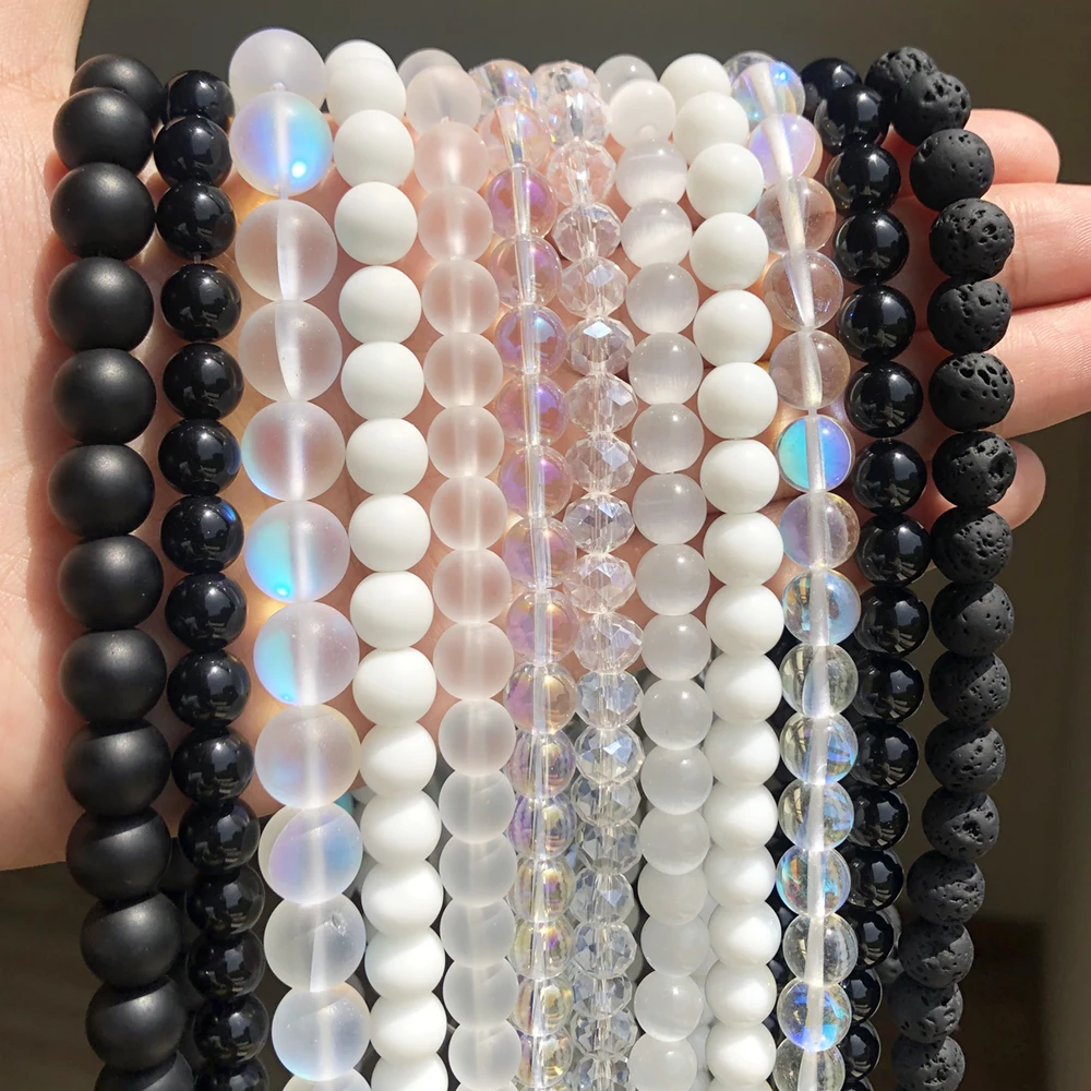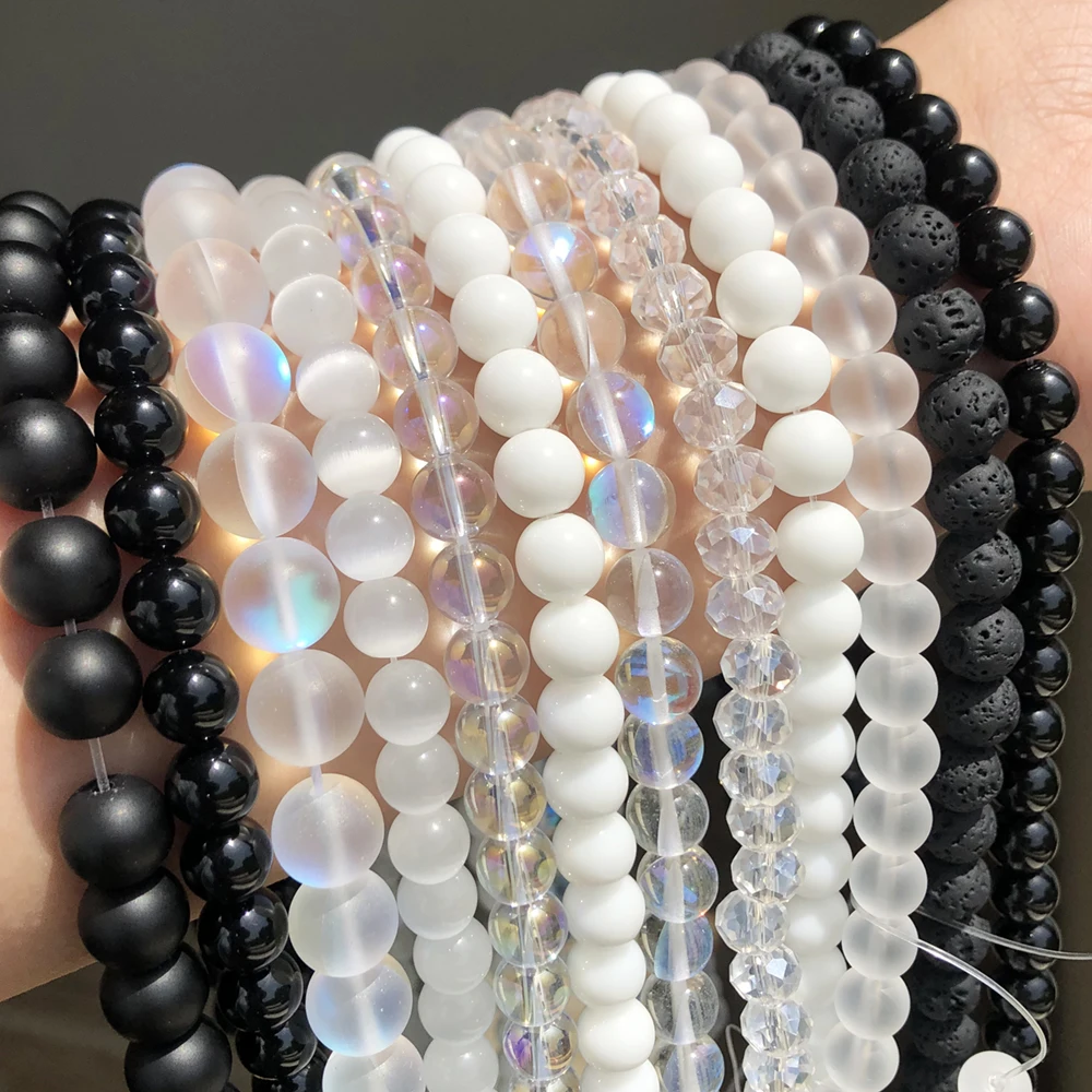 Натуральный Матовый черный, белый цвет Агаты с украшением в виде кристаллов вулканического камня Гладкие Круглые бусины Свободные бусины для самостоятельного изготовления ювелирных изделий браслет 4/6/8/10/12 мм