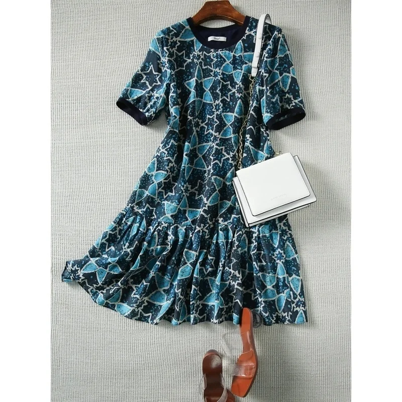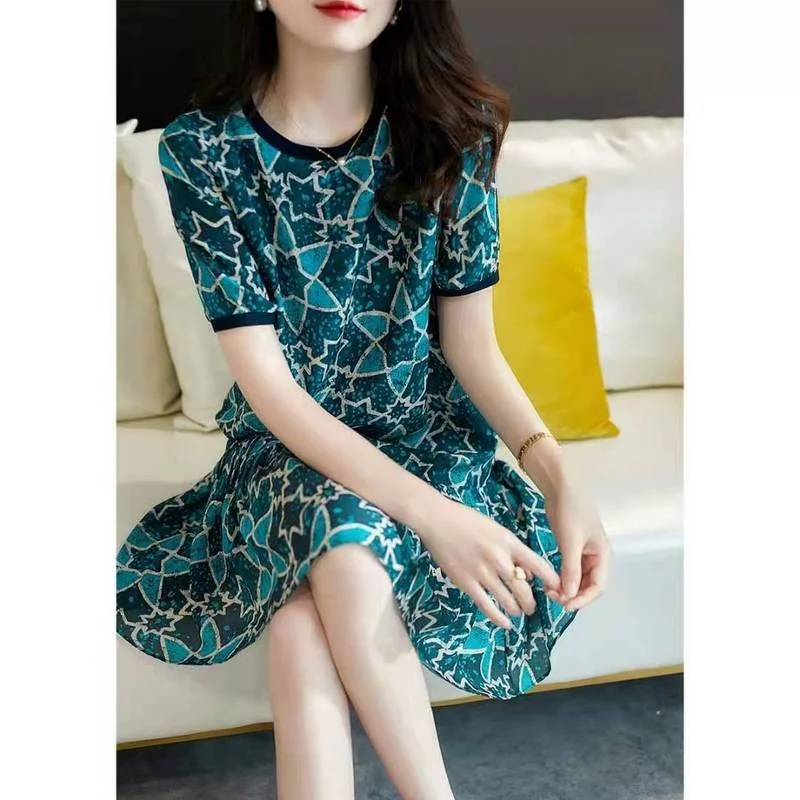 Темпераментное приталенное платье с принтом, женская одежда, лето 2020, новая юбка с круглым вырезом, коротким рукавом и регулируемой талией для похудения