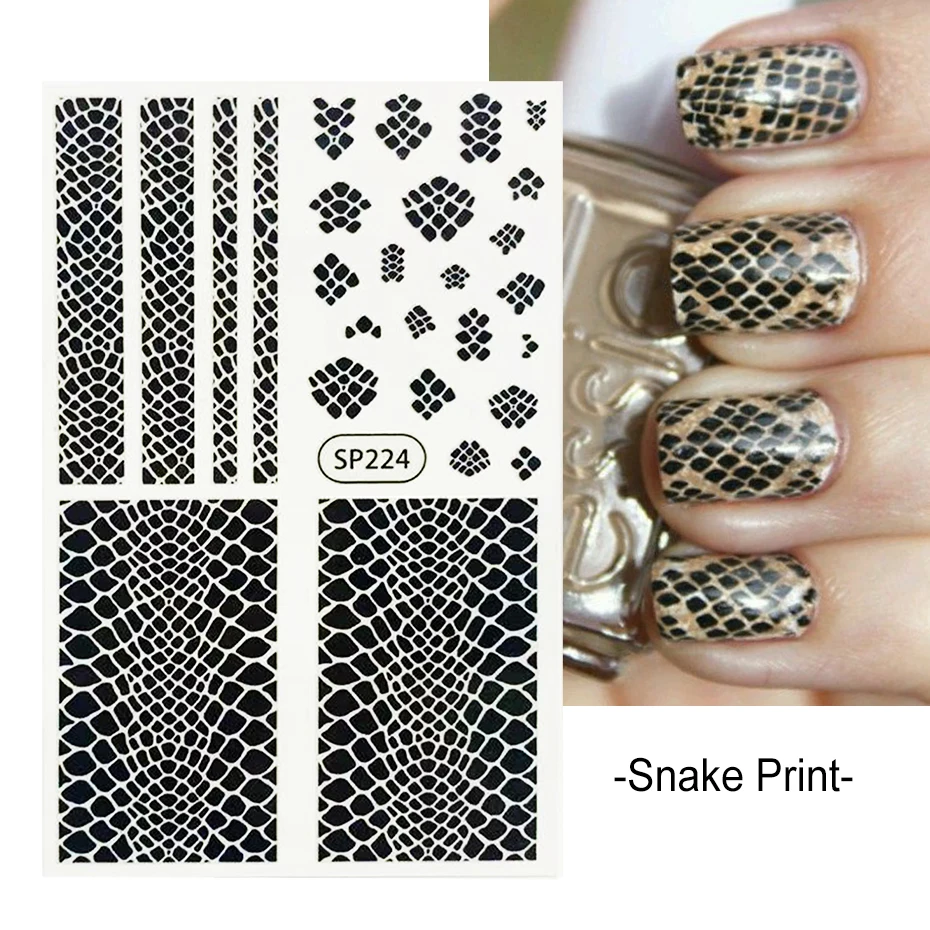 1 шт Черная Змея леопардовая печать наклейки Животные волосы корова Зебра шаблон ногтей талисманы клейкая Наклейка Маникюр слайдер на ногти