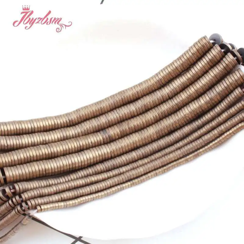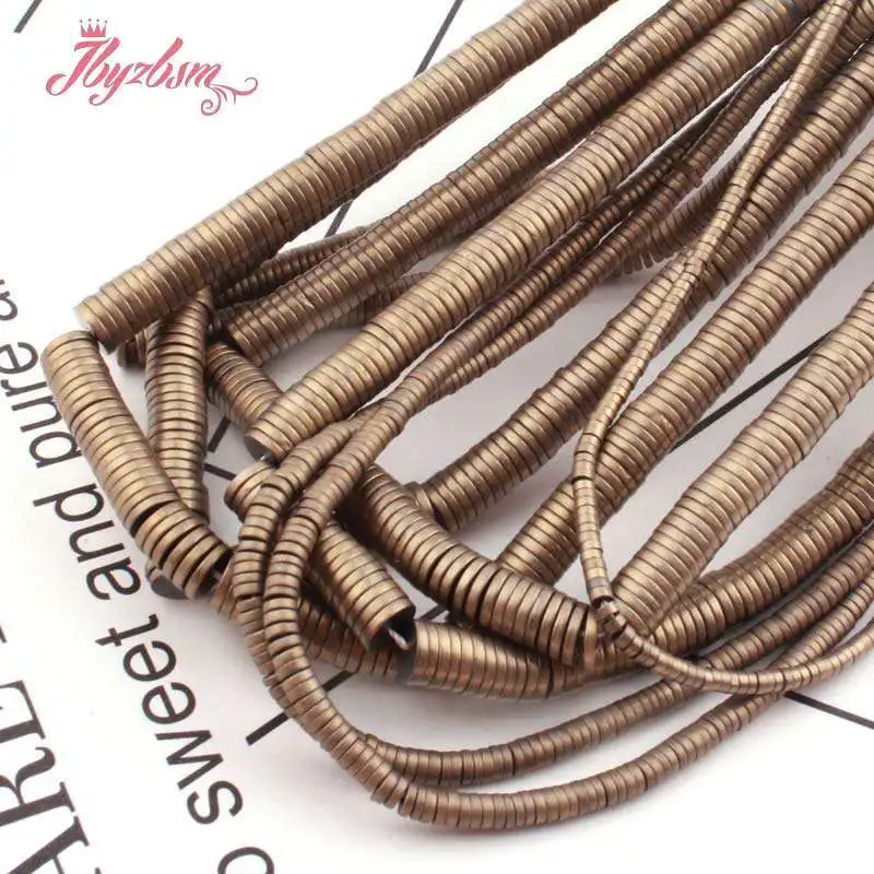 Natural Hematite Pyrite Color Forst Heishi Button Stone Beads 1x2/1x4/1x6mm For Jewelry Making DIY Necklace Bracelet Strand 15" Free Shipping