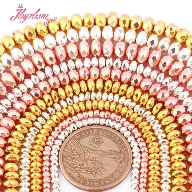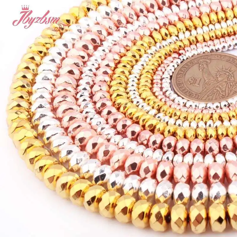 Бусины Из Натурального серебра, золота, розового золота, гематита Heishi, граненые камни 2x 3/2x 4/4x 6/5x8 мм для DIY ожерелья, браслета, ювелирных изделий 15"