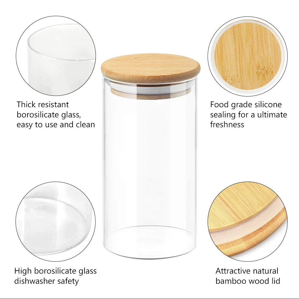 Здоровый выбор. Эти герметичные контейнеры изготовлены из высококачественного боросиликатного стекла, не содержащего свинца, нетоксичного, более здорового, чем пластиковые банки. Выдерживает высокую температуру, подходит для всех видов сред.