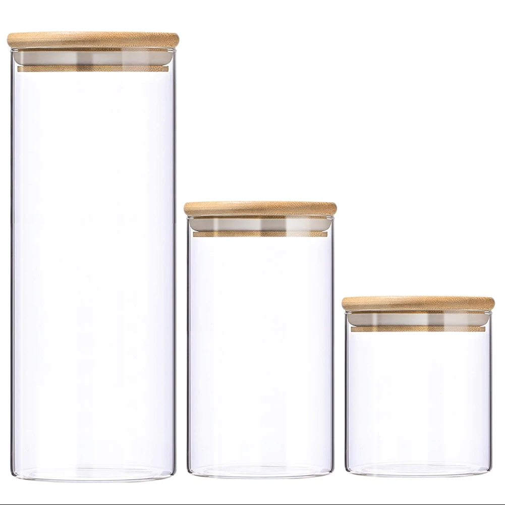 Кухонная Стеклянная банка для хранения еды контейнер для бутылок с бамбуковой крышкой герметичный.
