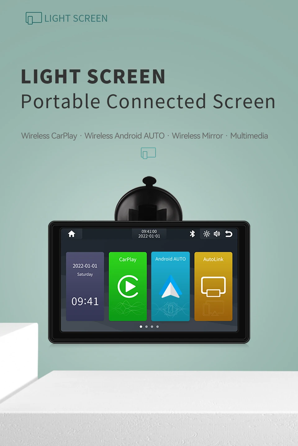 Этот портативный сенсорный экран поставляется с сильной подставкой с присоской может быть настенный на гладкой поверхности, как лобовое стекло, приборная панель и т. Д. Вам не нужно разбирать консоль вашего автомобиля, сохранить оригинальное радио автомобиля, идеальное сосуществования.