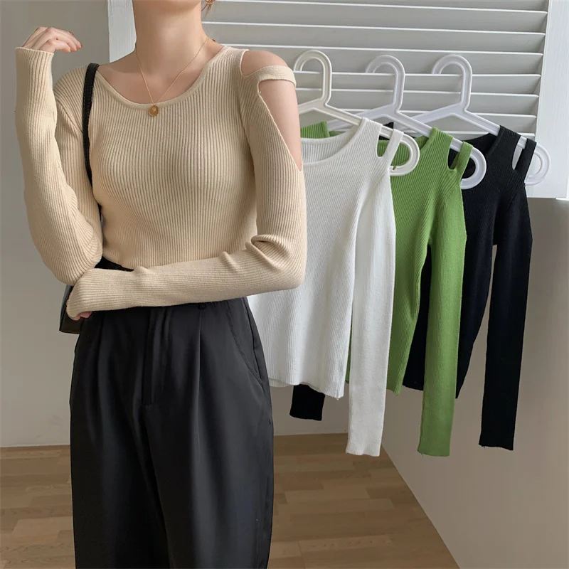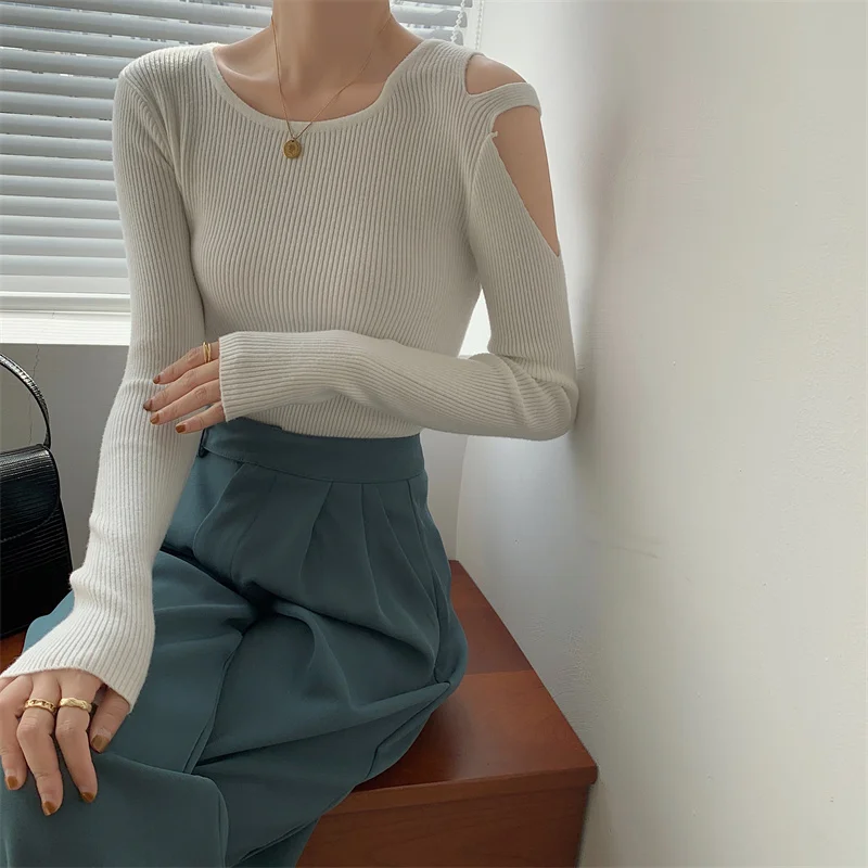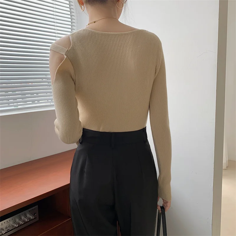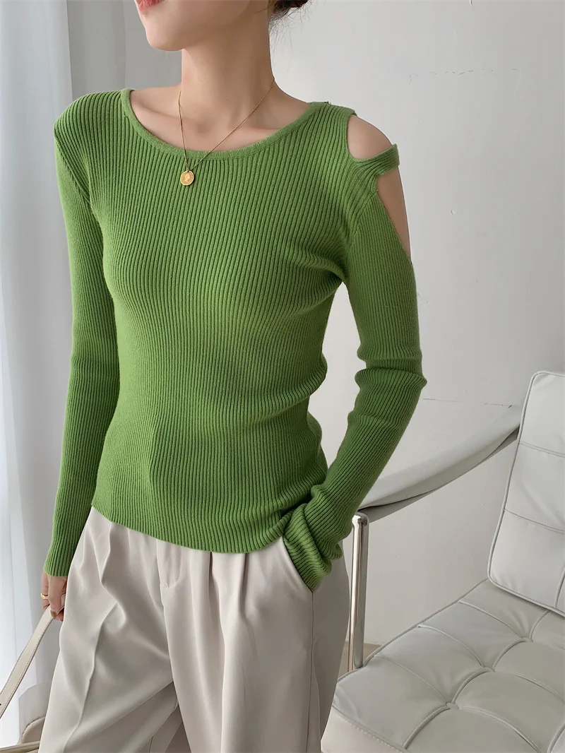 LLYGE DA однотонный Повседневный женский свитер с длинным рукавом и глубоким