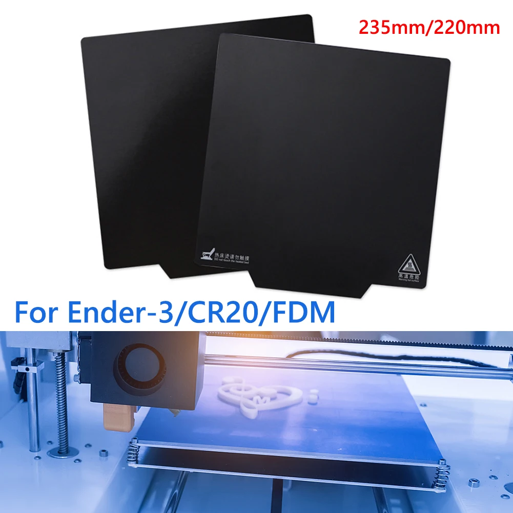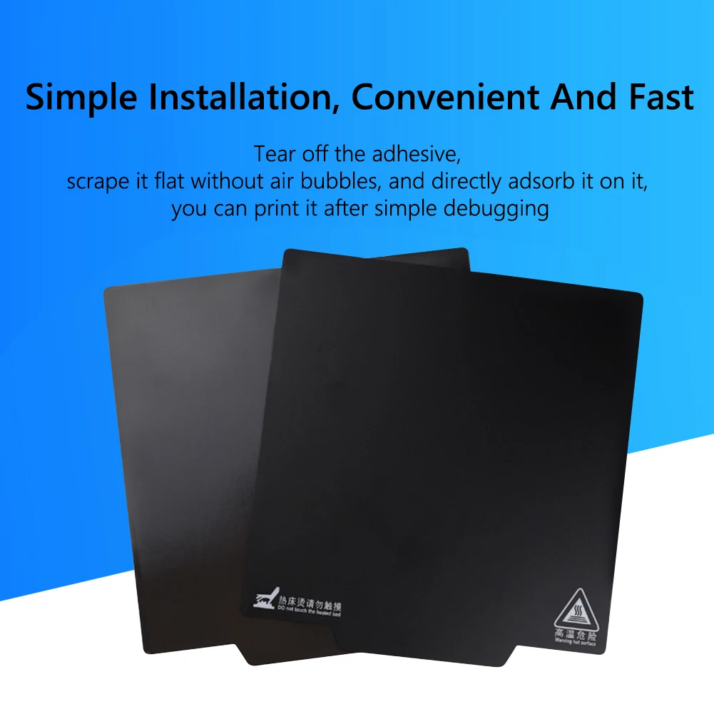 ![]() 2pcs 3D Printer Parts Magnetic Print Hot Bed Tape Build Surface Flex Plate Square Heatbed Stickers for Ender-3/CR20/FDM Feature: 5 major advantages: more high temperature resistance, no warping, repeated use, convenient cleaning, easy installation, convenient and fast. The black frosted surface with coarse sand pattern on the surface has strong flexibility and high temperature resistance, easy to stick to the printed product, and easy to take out and separate. PC mounted soft magnet material, flame-retardant, wear-resistant, anti-oxidation, low molding shrinkage, long-term resistance to 70℃ high temperature without demagnetization, hot-melt material combined with the printing layer, good reduction of deformation caused by shrinkage, scratch resistance, dirt resistance, resistance Hand sweat, can be used repeatedly. Easy-to-remove 3D printing platform suitable for PLA and PLA-based materials. To use it, simply glue the bottom plate to your build plate and start printing, peel off the top plate with the finished print, and then peel the top plate from the print. Snap the top plate back to its original position for the next round of printing. Specification: Name: Soft Magnetic Sticker for Heating Bed Applicable models: For Ender-3 series/CR20 and other FDM 3D printers Colour: Black Material: PC mounted soft magnet material Product size: 220*220*1mm/235*235*1mm (optional) Net weight: 220g Product Description: The product is divided into two parts: A (top) + B (bottom). Just stick the bottom plate to your build plate to start printing, peel up the top plate with the finished print, and then peel off the top plate from the print. Return the top plate to its original position for the next round of printing. If it fails to adsorb, please rotate it 90 degrees and try again. This build surface is only suitable for PLA filaments and PLA-based materials, and is not suitable for high-temperature printing applications above 70°C. Note: Due to the different monitor and light effect, the actual color of the item might be slightly different from the color showed on the pictures. Thank you! Please allow 1-2mm measuring deviation due to manual measurement. ![]() 2 X Stickers
